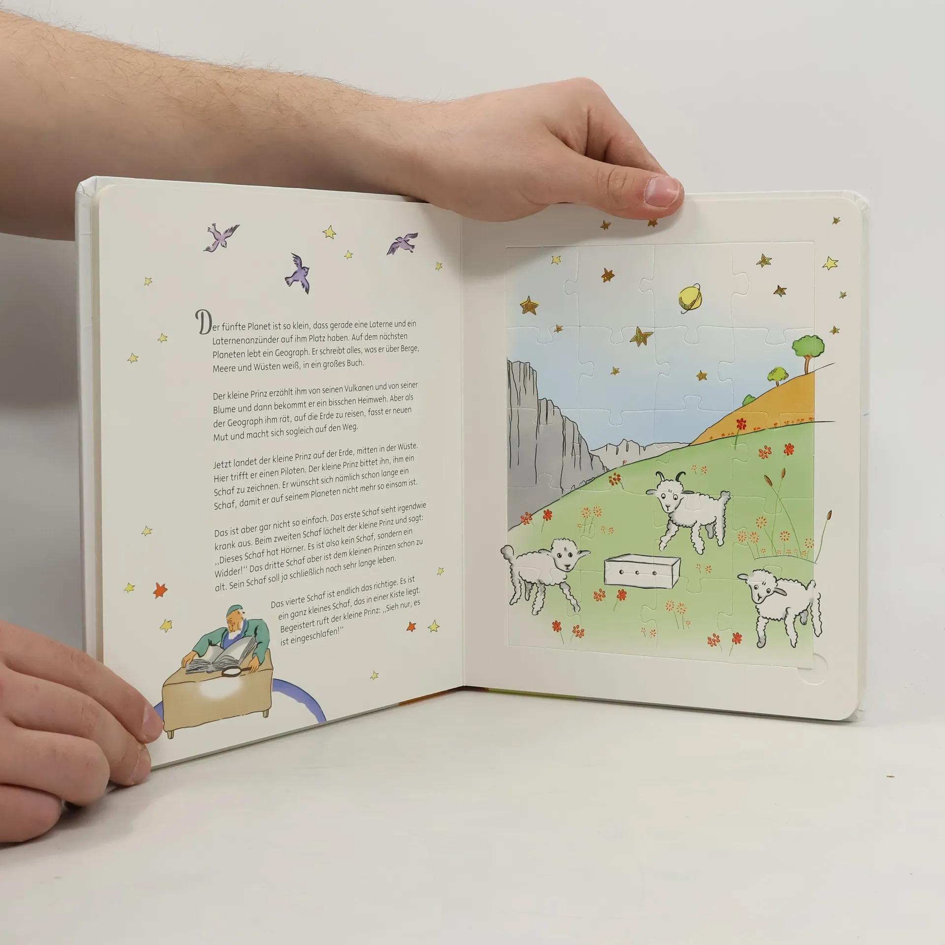Nach dem berühmten Weltbestseller von Antoine de Saint-Exupéry wird die Reise des Kleinen Prinzen in einfachen Worten kindgerecht erzählt. Dieses bezaubernde Puzzlebuch lädt zum Lesen und Spielen ein und begeistert Jung und Alt.