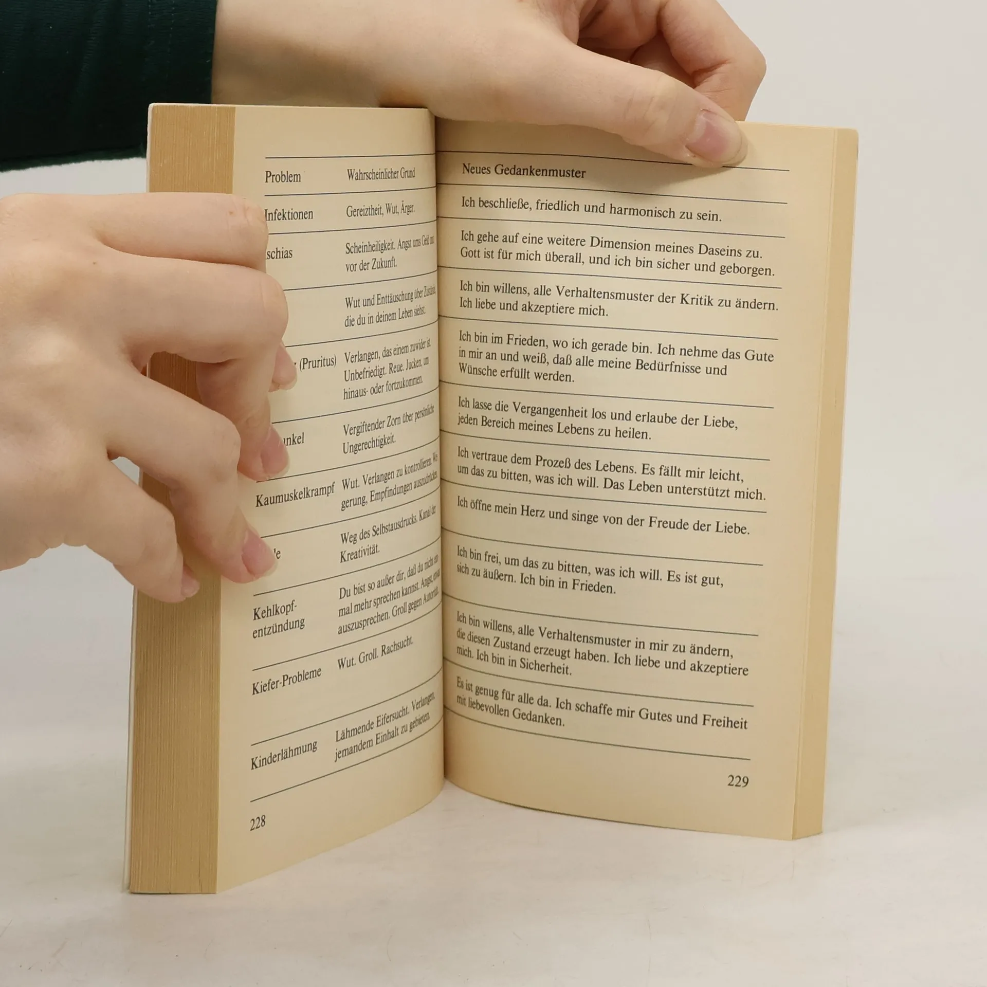 Dieses Buch hat für mich einen unvorstellbaren Wert. Als ich vor vielen Jahren an einer Angststörung litt, sah ich es im Bücherregal und kaufte es. Ich arbeitete es Kapitel für Kapitel durch und wurde gesund. Ich bin fasziniert von Louise Hay und ihrer eigenen Geschichte. Als ein Freund an Krebs erkrankte, gab ich es aus der Hand. Um so mehr freute es mich, es dieses Jahr hier zu entdecken. Ich kaufte es ein zweites Mal und bin überglücklich. So kann ich vielen Menschen helfen, ihren Körper zu heilen, indem ich von meiner Erfahrung mit dem Buch erzähle und es verleihe.