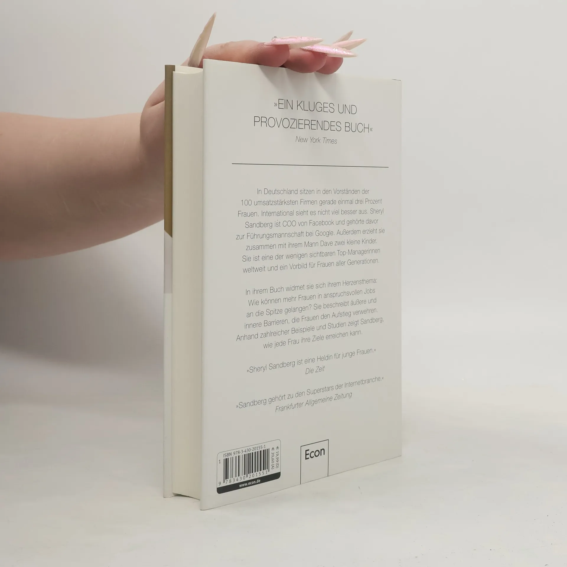 In Deutschland sitzen in den Vorständen der 100 umsatzstärksten Firmen gerade einmal 3 Prozent Frauen. International sieht es nicht viel besser aus. Sheryl Sandberg aber ist ganz oben angekommen. Sie ist Geschäftsführerin von Facebook und gehörte davor zur Führungsmannschaft bei Google. Außerdem erzieht sie zusammen mit ihrem Mann Dave zwei Kleinkinder. Sheryl Sandberg ist eine der wenigen sichtbaren Top-Managerinnen weltweit und ein Vorbild für Generationen von Frauen. In ihrem Buch widmet sie sich ihrem Herzensthema: Wie können mehr Frauen in anspruchsvollen Jobs an die Spitze gelangen? Sie beschreibt äußere und innere Barrieren, die Frauen den Aufstieg verwehren. Anhand von unzähligen Beispielen und Studien zeigt Sandberg, wie jede Frau ihre Ziele erreichen kann und welche Kleinigkeiten dem Erfolg manchmal im Wege stehen.