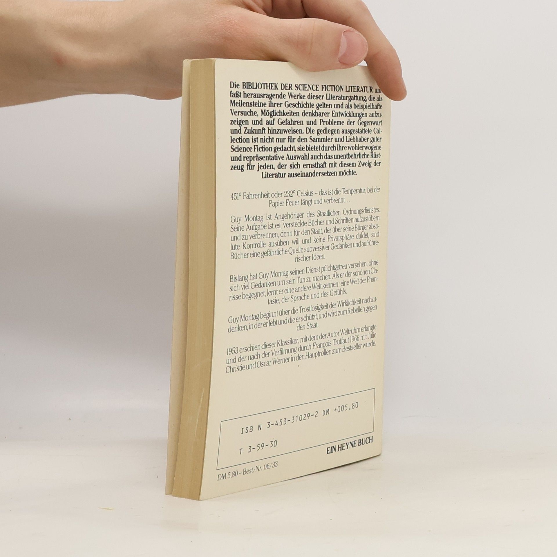 451 Fahrenheit oder 232 Celcius - die Temperatur, bei der Papier verbrennt. Guy Montag ist Feuerwehrmann. Es ist seine Aufgabe, Bücher zu beschlagnahmen und zu verbrennen. Denn Bücher sind die Quelle allen Unglücks. Ray Bradburys Klassiker in vollständig überarbeiteter Neuausgabe. Mit einem Vorwort von Brian W. Aldiss. Source: randomhouse.de