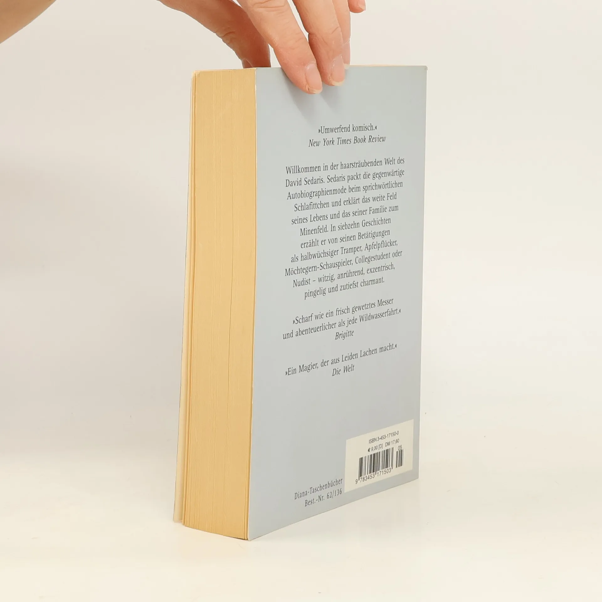 Willkommen in der komischen, schrägen, melancholischen, haarsträubenden Welt des David Sedaris. Sedaris packt die gegenwärtige Autobiographiemode beim sprichwörtlichen Schlafittchen und erklärt das weite Feld seines Lebens, seiner Familie und seiner eigenwilligen Weltsicht zum Minengebiet. Eine bärbeißige Mutter ahmt bühnenreif die nervösen Tics ihres Sohnes nach, sehr zur Belustigung seiner Lehrer; ausgedehnte Ferientouren werden per Autostopp absolviert, nicht ohne die behinderte Freundin im Rollstuhl, selbstverständlich; die Familie bläst zum Hochzeitsfest im Angesicht eines nahenden Todes - in all diesen Geschichten hören wir die unverwechselbare Stimme von David Sedaris, die ohne Zweifel eine der erfrischendsten des heutigen Amerika ist.