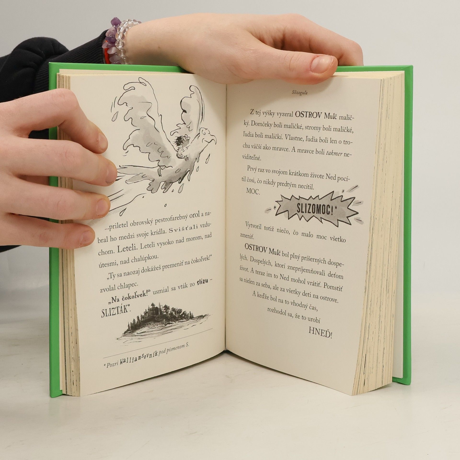 David Walliams tentoraz napísal niečo nielen veľké, ale aj pekne hnusné! Chcete to fakt čítať? Tak vitajte na ostrove MULČ! Na tomto malom ostrove býva neuveriteľné množstvo hnusných dospelých. Školu, miestny park, hračkárstvo, ba dokonca aj pojazdné zmrzlinárske auto riadia príšerní dospeláci, ktorí radi robia deťom peklo zo života. Samotný ostrov vlastní tá najodpornejšia osoba – Gréta Chamtivá! Niečo s nimi už konečne treba spraviť. Nájde sa aspoň jeden odvážlivec, čo to zvládne? Zoznámte sa s Nedom – neobyčajným chlapcom so zvláštnymi schopnosťami – SLIZOSCHOPNOSŤAMI!