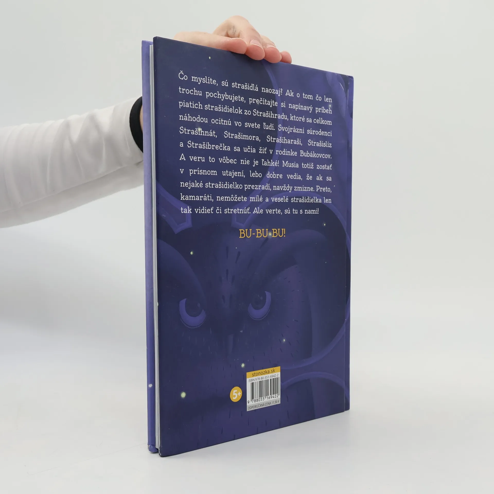 Čo myslíte, sú strašidlá naozaj? Ak o tom čo len trochu pochybujete, prečítajte si napínavý príbeh piatich strašidielok zo Strašihradu, ktoré sa celkom náhodou ocitnú vo svete ľudí. Svojrázni súrodenci Strašihnát, Strašimora, Strašiharaši, Strašisliz Strašibrečka sa učia žiť v rodinke Bubákovcov. A veru to vôbec nie je ľahké! Musia totiž zostať v prísnom utajení, lebo dobre vedia, že ak sa nejaké strašidielko prezradí, navždy zmizne. Preto, kamaráti, nemôžete milé a veselé strašidielka len tak vidieť či stretnúť. Ale verte, sú tu s nami! BU-BU-BU!