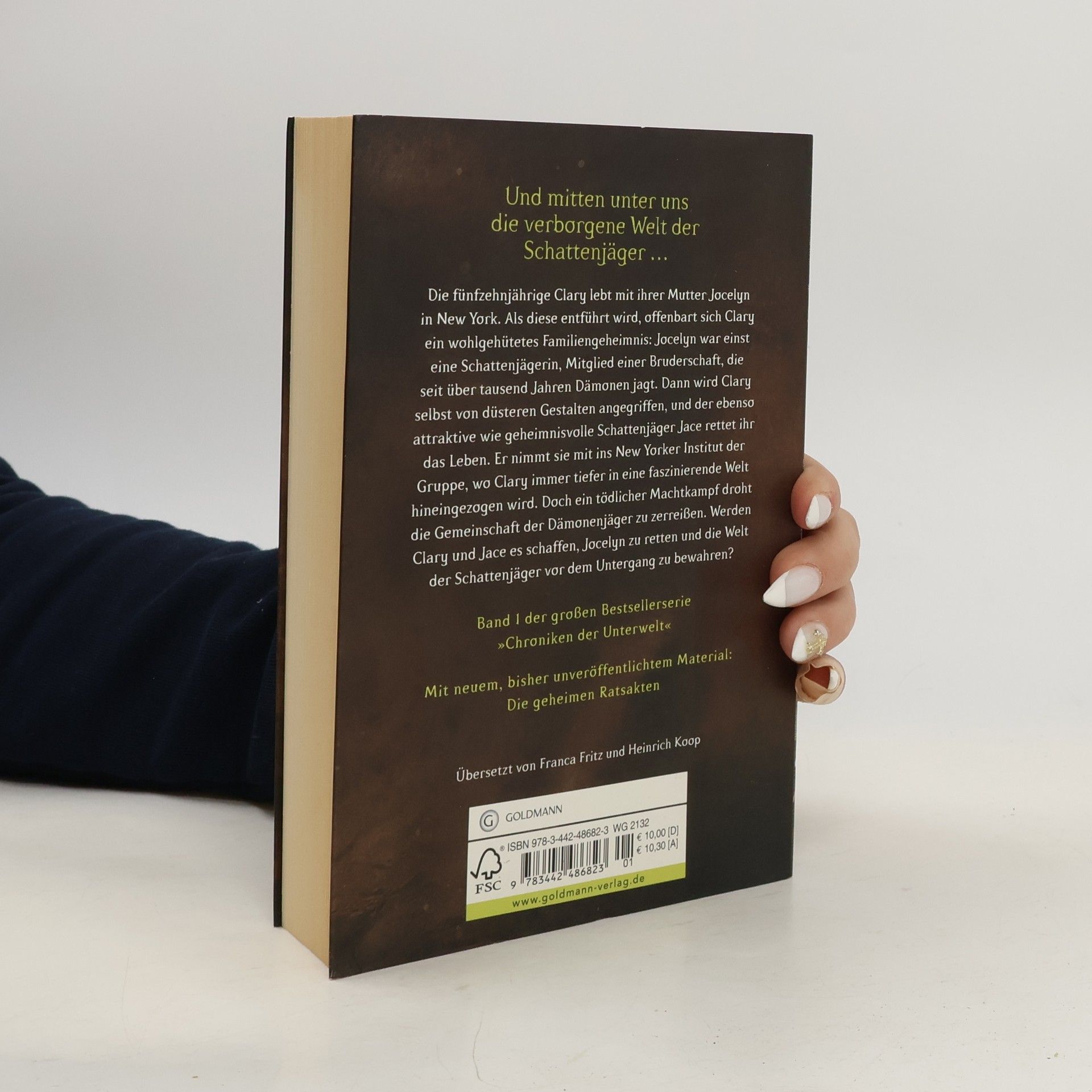 Die fünfzehnjährige Clary lebt mit ihrer Mutter Jocelyn in New York. Als diese unter höchst merkwürdigen Umständen entführt wird, offenbart sich Clary ein wohlgehütetes Familiengeheimnis: Ihre Mutter war einst eine Schattenjägerin, Mitglied einer Bruderschaft, die seit über tausend Jahren Dämonen jagt. Als Clary selbst von düsteren Gestalten angegriffen wird, rettet der ebenso attraktive wie geheimnisvolle Jace ihr das Leben. Er nimmt sie mit ins New Yorker Institut der Gruppe, und nach und nach wird Clary immer tiefer in diese faszinierende Welt hineingezogen. Doch ein tödlicher Machtkampf zwischen Gut und Böse droht die Gemeinschaft der Dämonenjäger zu zerreißen. Werden Clary und Jace es schaffen, Jocelyn zu retten und die Welt der Schattenjäger vor dem Untergang zu bewahren?Neuausgabe des bereits 2008 erschienenen Romans.