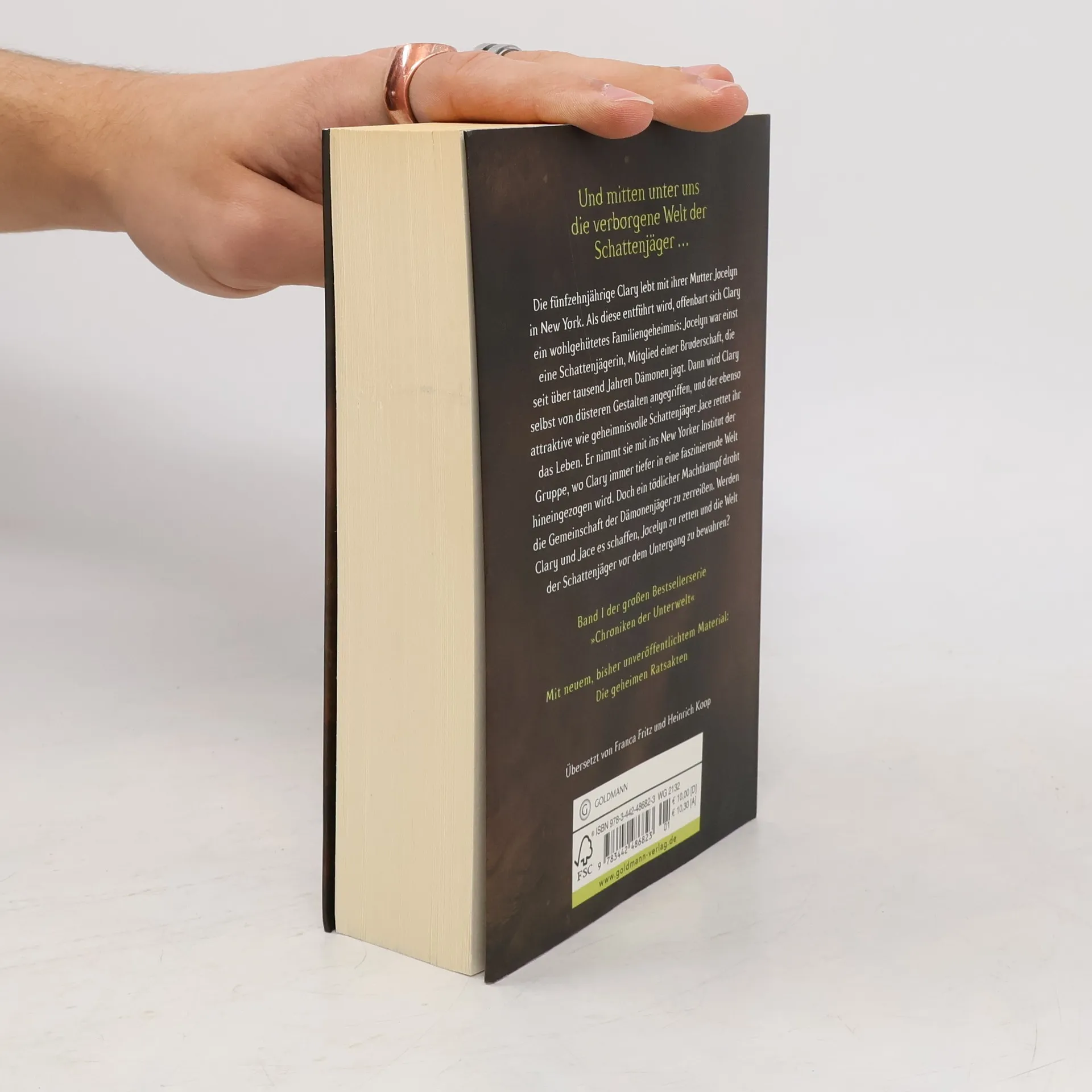 Die fünfzehnjährige Clary lebt mit ihrer Mutter Jocelyn in New York. Als diese unter höchst merkwürdigen Umständen entführt wird, offenbart sich Clary ein wohlgehütetes Familiengeheimnis: Ihre Mutter war einst eine Schattenjägerin, Mitglied einer Bruderschaft, die seit über tausend Jahren Dämonen jagt. Als Clary selbst von düsteren Gestalten angegriffen wird, rettet der ebenso attraktive wie geheimnisvolle Jace ihr das Leben. Er nimmt sie mit ins New Yorker Institut der Gruppe, und nach und nach wird Clary immer tiefer in diese faszinierende Welt hineingezogen. Doch ein tödlicher Machtkampf zwischen Gut und Böse droht die Gemeinschaft der Dämonenjäger zu zerreißen. Werden Clary und Jace es schaffen, Jocelyn zu retten und die Welt der Schattenjäger vor dem Untergang zu bewahren?Neuausgabe des bereits 2008 erschienenen Romans.