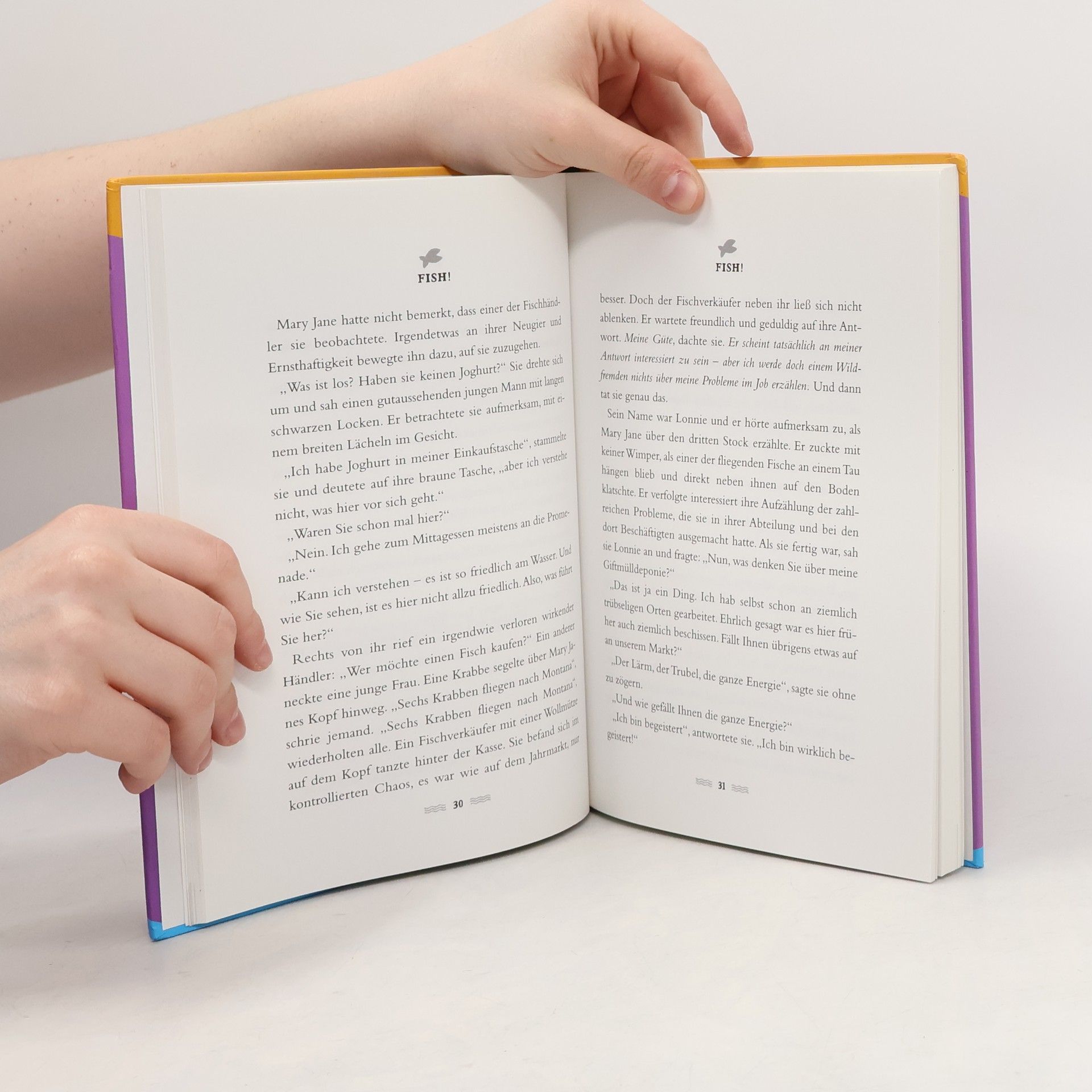 „Fish!™“ verrät das Erfolgsgeheimnis des weltberühmten Pike Place Fischmarkts in Seattle. Die Geschichte zeigt, wie unglaublich wichtig es ist, eine positive Lebenseinstellung zu haben. Das Autorenteam gibt dem Leser vier schlichte Handlungsmaximen mit auf den Weg, die seine Arbeits- und Lebenseinstellung revolutionieren werden. Denn wer beschließt, alles, was er ohnehin tun muss, mit Freude zu tun, motiviert sich selbst und kann ein ganzes Team erfolgreich zu Spitzenleistungen bringen.