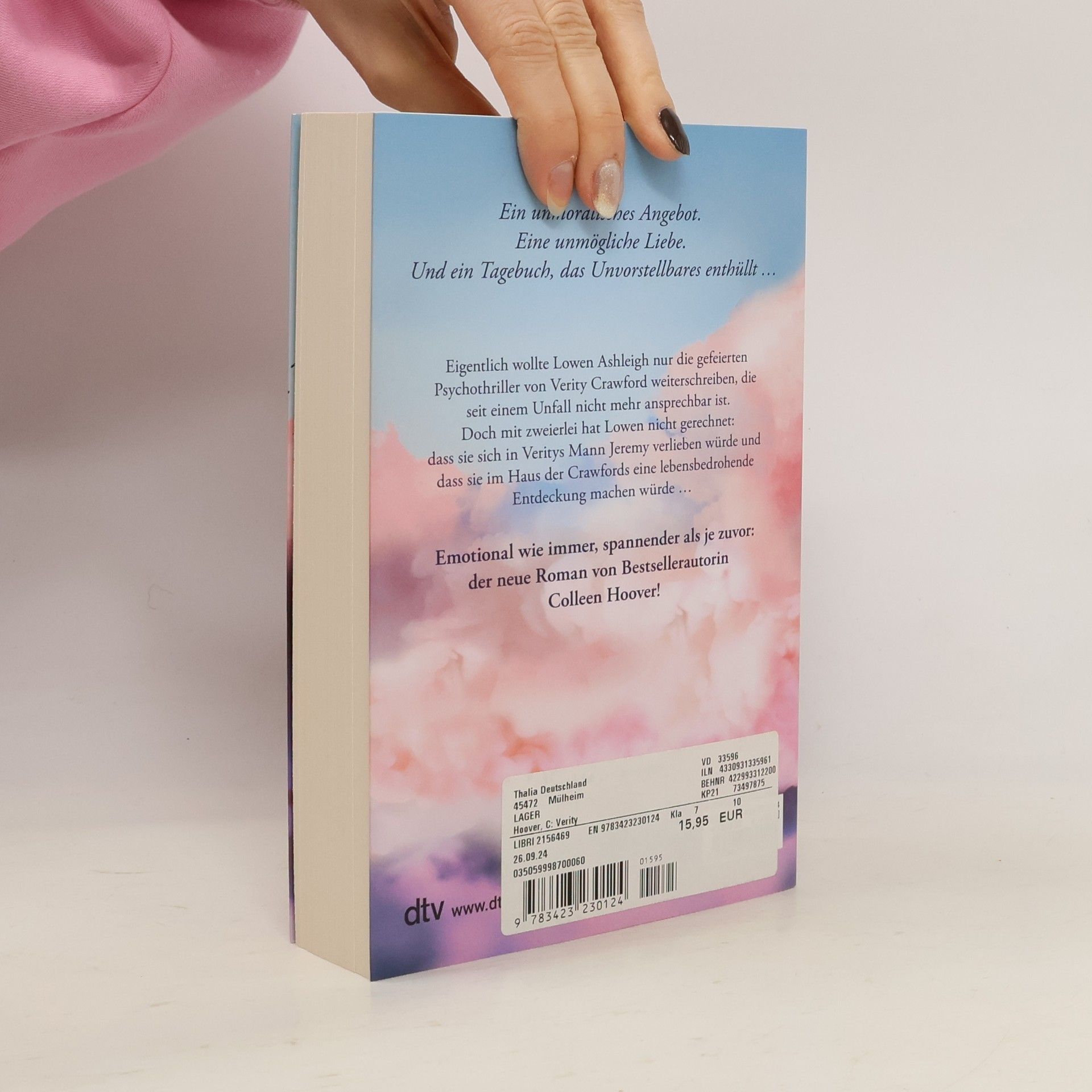 »Voller aufwühlender Emotionen, düster, faszinierend und extrem süchtig machend.« TotallyBooked Blog Die Jungautorin Lowen Ashleigh bekommt ein Angebot, das sie unmöglich ablehnen kann: Sie soll die gefeierten Psychothriller von Starautorin Verity Crawford zu Ende schreiben. Diese ist seit einem Autounfall, der unmittelbar auf den Tod ihrer beiden Töchter folgte, nicht mehr ansprechbar und ein dauerhafter Pflegefall. Lowen akzeptiert – auch, weil sie sich zu Veritys Ehemann Jeremy hingezogen fühlt. Während ihrer Recherchen im Haus der Crawfords findet sie Veritys Tagebuch und darin offenbart sich Lowen Schreckliches …