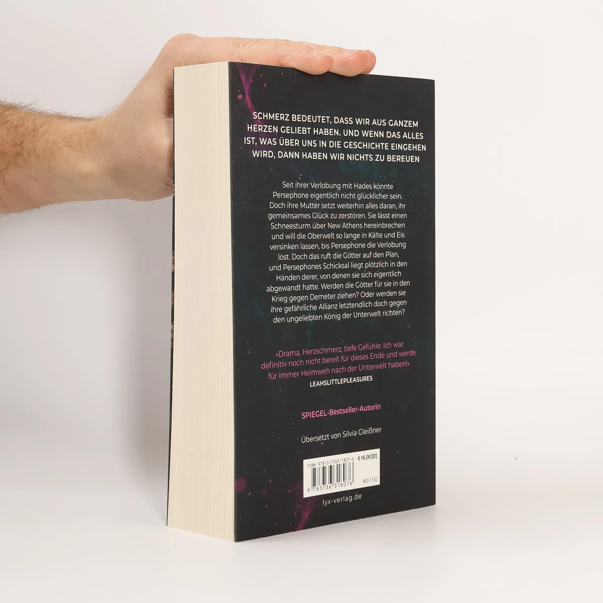 Schmerz bedeutet, dass wir aus dem ganzen Herzen geliebt haben. Und wenn das alles ist, was über uns in die Geschichte eingehen wird, dann haben wir nichts zu bereuen Seit ihrer Verlobung mit Hades könnte Persephone eigentlich nicht glücklicher sein. Doch ihre Mutter setzt weiterhin alles daran, ihr gemeinsames Glück zu zerstören. Sie lässt einen Schneesturm über New Athens hereinbrechen und will die Oberwelt so lange in Kälte und Eis versinken lassen, bis Persephone die Verlobung löst. Doch das ruft die Götter auf den Plan, und Persephones Schicksal liegt plötzlich in den Händen derer, von denen sie sich eigentlich abgewandt hatte. Werden die Götter für sie in den Krieg gegen Demeter ziehen? Oder werden sie ihre gefährliche Allianz letztendlich doch gegen den ungeliebten König der Unterwelt richten? „Drama, Herzschmerz, tiefe Gefühle: Ich war definitiv noch nicht bereit für dieses Ende und werde für immer Heimweh nach der Unterwelt haben!“ LEAHSLITTLEPLEASURES Band 3 der HADES& PERSEPHONE-Trilogie von Bestseller-Autorin Scarlett St. Clair