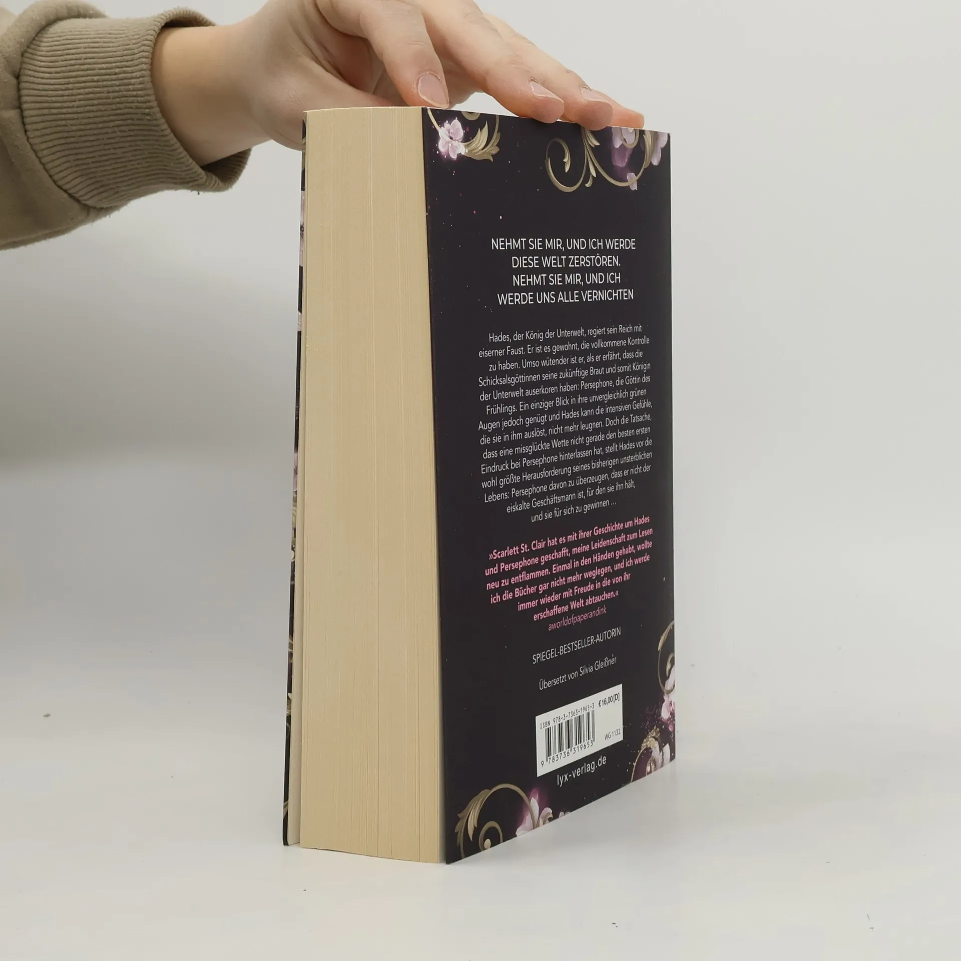 Nehmt sie mir, und ich werde diese Welt zerstören. Nehmt sie mir, und ich werde uns alle vernichten Hades, der König der Unterwelt, regiert sein Reich mit eiserner Faust. Er ist es gewohnt, die vollkommene Kontrolle zu haben. Umso wütender ist er, als er erfährt, dass die Schicksalsgöttinnen seine zukünftige Braut und somit Königin der Unterwelt auserkoren haben: Persephone, die Göttin des Frühlings. Ein einziger Blick in ihre unvergleichlich grünen Augen jedoch genügt und Hades kann die intensiven Gefühle, die sie in ihm auslöst, nicht mehr leugnen. Doch die Tatsache, dass eine missglückte Wette nicht gerade den besten ersten Eindruck bei Persephone hinterlassen hat, stellt Hades vor die wohl größte Herausforderung seines bisherigen unsterblichen Lebens: Persephone davon zu überzeugen, dass er nicht der eiskalte Geschäftsmann ist, für den sie ihn hält, und sie für sich zu gewinnen ... »Scarlett St. Clair hat es mit ihrer Geschichte um Hades und Persephone geschafft, meine Leidenschaft zum Lesen neu zu entflammen. Einmal in den Händen gehabt, wollte ich die Bücher gar nicht mehr weglegen, und ich werde immer wieder mit Freude in die von ihr erschaffene Welt abtauchen.« AWORLDOFPAPERANDINK Band 1 der HADES-SAGA von Bestseller-Autorin Scarlett St. Clair