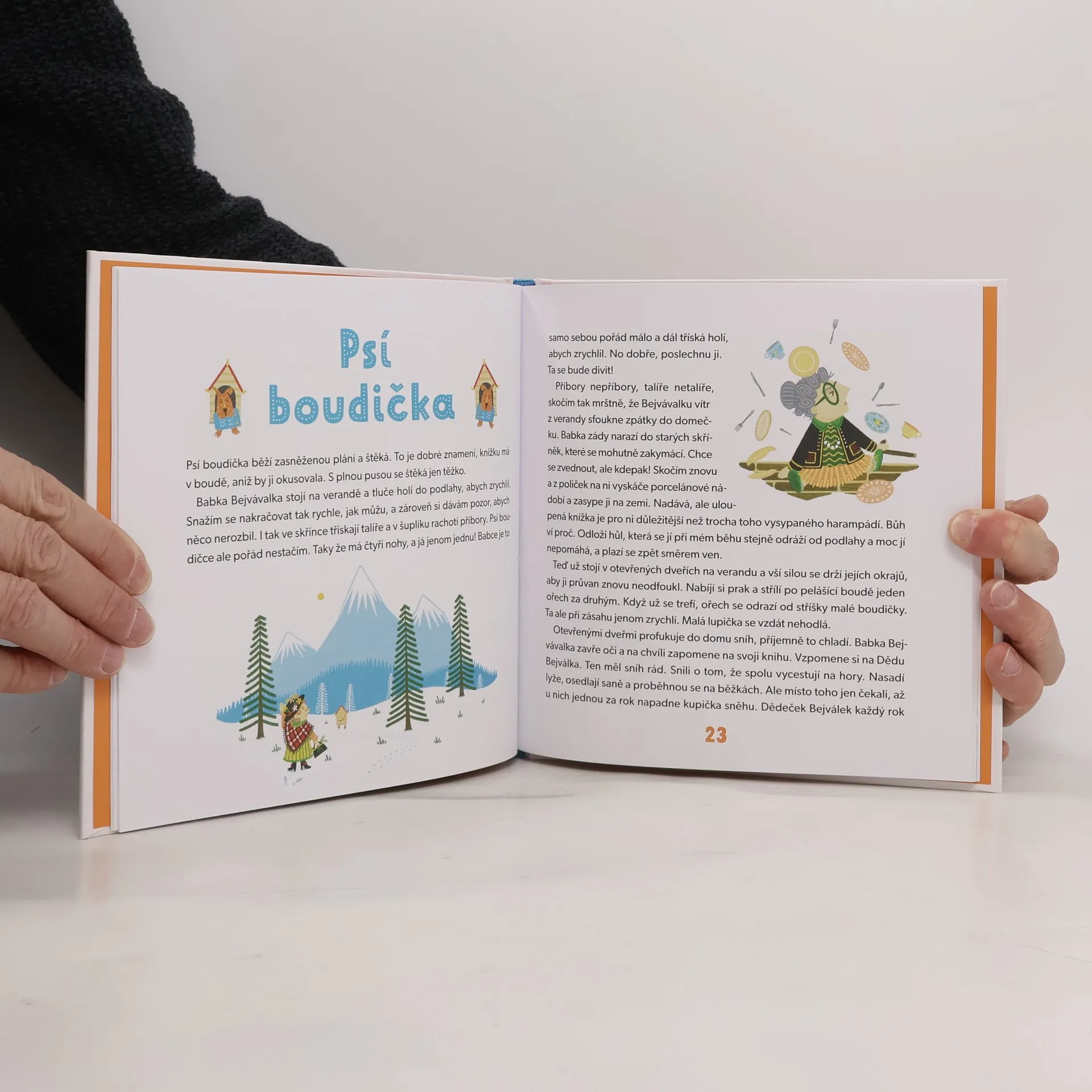 "Dobrodružné vyprávění o tom, jak je důležité překročit práh dveří" Každý domek chce být zabydlený upomínkami z cest, aby měl kus světa pod střechou. Jenže Babka Bejvávalka se kdysi rozhodla, že už nikdy nevystrčí nos ven. Naštěstí její domeček stojí na kuří nožce a na vandr se vydá po svých i proti její vůli. Dobrodružné vyprávění o tom, jak je důležité překročit práh dveří, vás zabydlí vzpomínkami od hlavy až k patě!