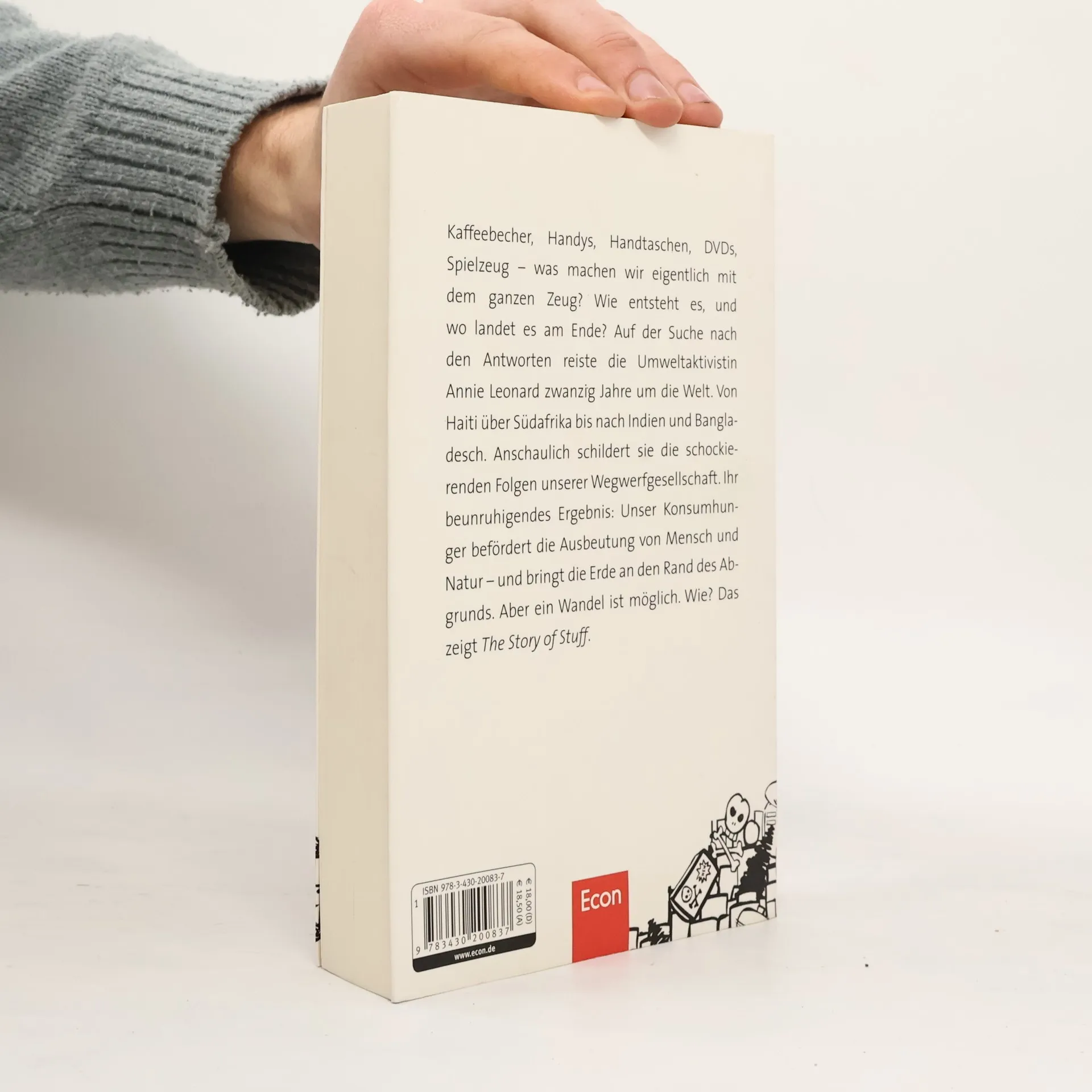Wie entsteht dieses Zeug, wo kommt es her und was machen wir damit, wenn wir es nicht mehr brauchen? Die engagierte Umweltaktivistin Annie Leonard geht diesen Fragen auf anschauliche Weise nach und zeigt die Folgen unserer Wegwerfgesellschaft. Im Laufe ihrer zwanzigjährigen Arbeit für Greenpeace und andere NGOs hat sie viele Fabriken, Bergwerke und Müllkippen besucht. Bei ihrer Arbeit als 'toxic travel ler' kam sie in 40 Länder. Sie berichtet von Familien in Bangladesch, die auf riesigen Müllhalden leben, oder von Näherinnen in Haiti, die seit Jahren vergeblich um menschenwürdigere Arbeitsbedingungen kämpfen. Ihr Buch zeigt, wie wir diese Verhältnisse ändern können. Es ist das Glaubensbekenntnis einer neuen ökologischen Bewegung. Die Homepage zum Buch mit viel Bonusmaterial finden Sie hier.