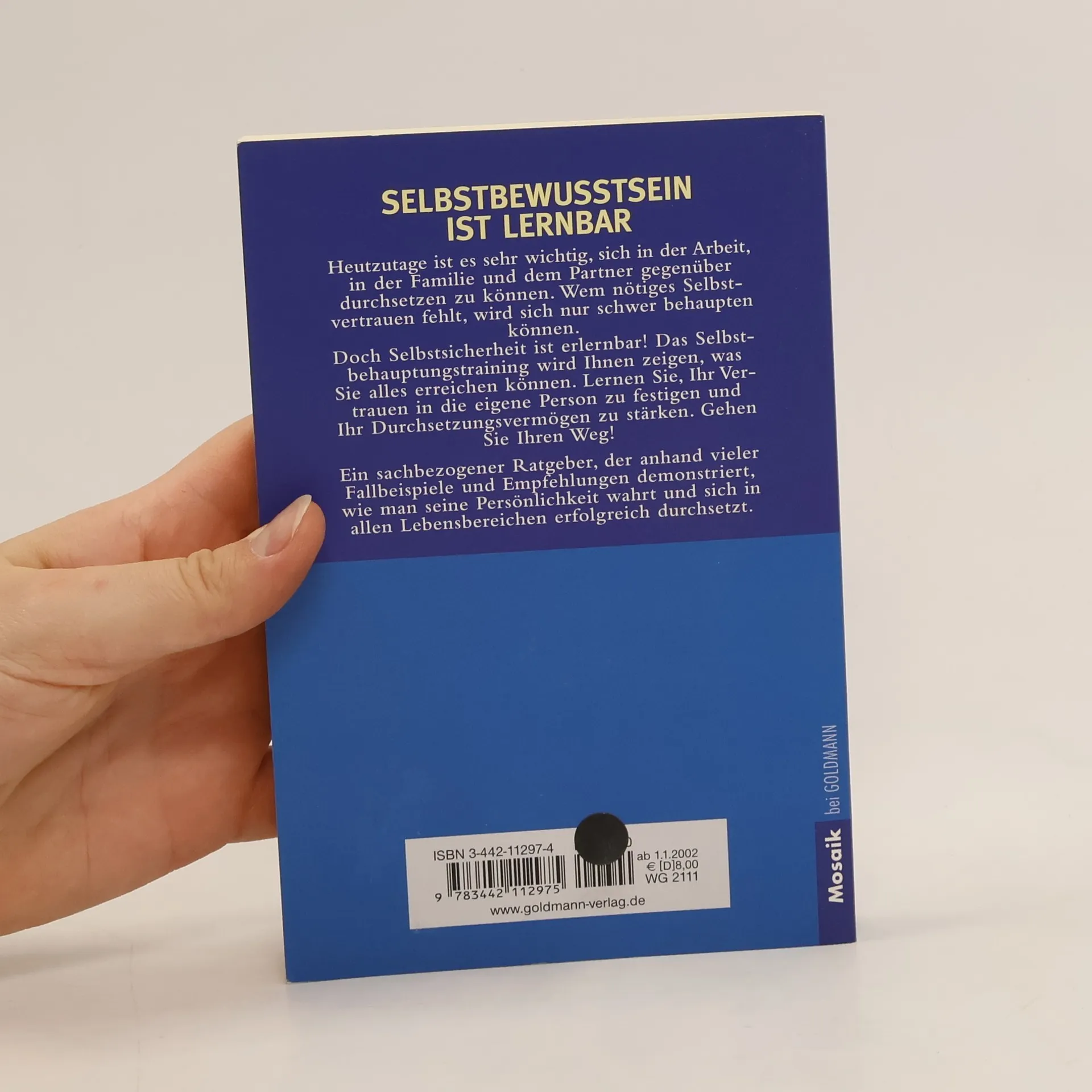 Seit Jahrzenten erfolgreich: das Standardwerk zum Thema Selbstbewusstsein Selbstsicherheit kann man lernen – mit dem Training des amerikanischen Psychotherapeuten Professor Herbert Fensterheim und der Journalistin Jean Baer. Das Programm, mit dem sie schon Millionen Menschen geholfen haben, demonstriert, wie man das Vertrauen in die eigene Person stärkt und sich durchsetzt – im Beruf, in der Liebe, im Familienkreis, in der Gesellschaft.