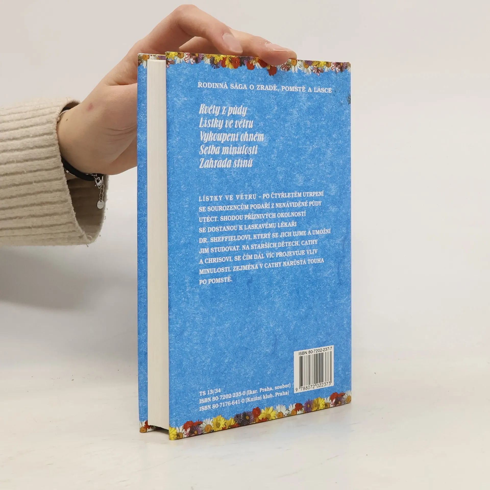 Pentalogie: Květy z půdy, Lístky ve větru, Vykoupení ohněm, Setba minulosti, Zahrada stínů. Po smrti otce zůstávají sourozenci Christopher, Cathy a dvojčata Cory a Carrie se svou matkou sami. Ta ovšem nemá peníze, a tak se rozhodne pro riskantní návrat k velmi bohatým rodičům, kteří ji ale vydědili. Děti zavře do podkrovního pokoje a s pomocí své zlé matky jim nosí potřebné věci k přežití. Dětem vlastně nic neschází, kromě čerstvého vzduchu, živých květin a pocitu volnosti. Na půdě, kam je přístup jen z onoho pokoje si vybudují papírovou "zahradu" kde si můžou pětiletá dvojčata hrát. Postihne je ale nejedno úskalí, největším problémem začíná být dospívání Christophera a Cathy, kteří se do sebe bezhlavě zamilují... 2. vydání