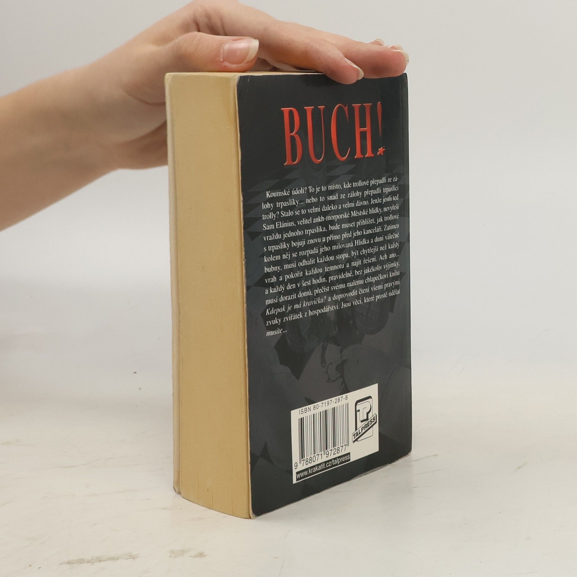 Koumské údolí? To je to místo, kde trollové přepadli ze zálohy trpaslíky... nebo to snad ze zálohy přepadli trpaslíci trolly? Stalo se to velmi daleko a velmi dávno. Jenže jestli teď Sam Elánius, velitel ankh-morporské městské hlídky, nevyřeší vraždu jednoho trpaslíka, bude muset přihlížet, jak trollové s trpaslíky bojují znovu a přímo před jeho kanceláří. Zatímco kolem něj se rozpadá jeho milovaná Hlídka a duní válečné bubny, musí odhalit každou stopu, být chytřejší než každý vrah a pokořit každou temnotu a najít řešení. Ach ano... a každý den v šest hodin, pravidelně, bez jakékoliv výjimky, musí dorazit domů, přečíst svému malému chlapečkovi knihu Kampak se poděla má kravička? A doprovodit čtení všemi pravými zvuky zvířátek z hospodářství. Jsou věci, které prostě udělat musíte.