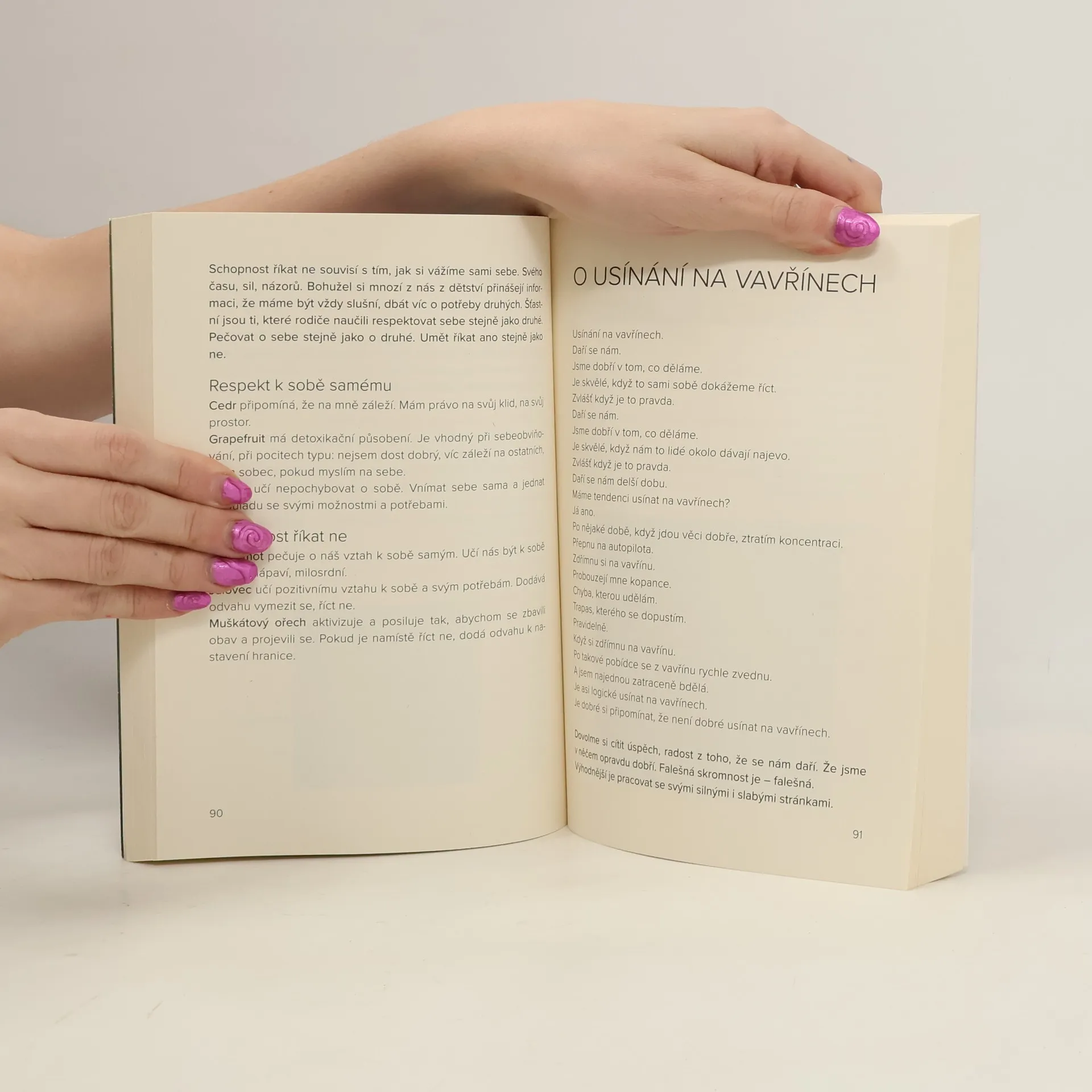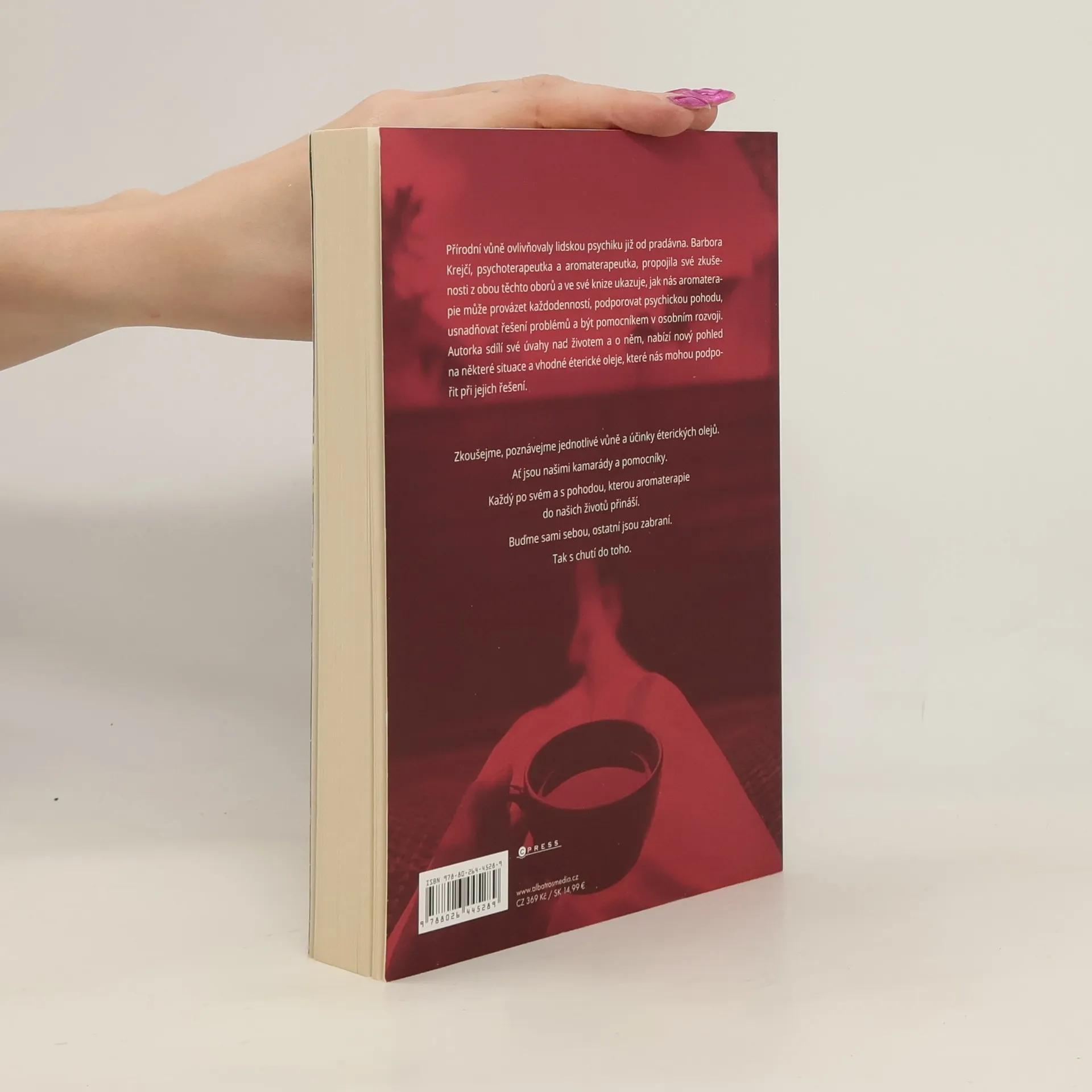 Aromaterapie na každý den. Účinky éterických olejů v péči o psychiku. Přírodní vůně ovlivňovaly lidskou psychiku již od pradávna. Autorka Barbora Krejčí, psychoterapeutka a aromaterapeutka, propojila své zkušenosti z obou těchto oborů a ve své knize ukazuje, jak nás aromaterapie může provázet každodenností, jak může podporovat psychickou pohodu, usnadňovat řešení problémů a být pomocníkem v osobním rozvoji. Sdílí své úvahy nad životem a o něm, nabízí nám nový pohled na řešení některých situací a jejich podporu éterickými oleji.