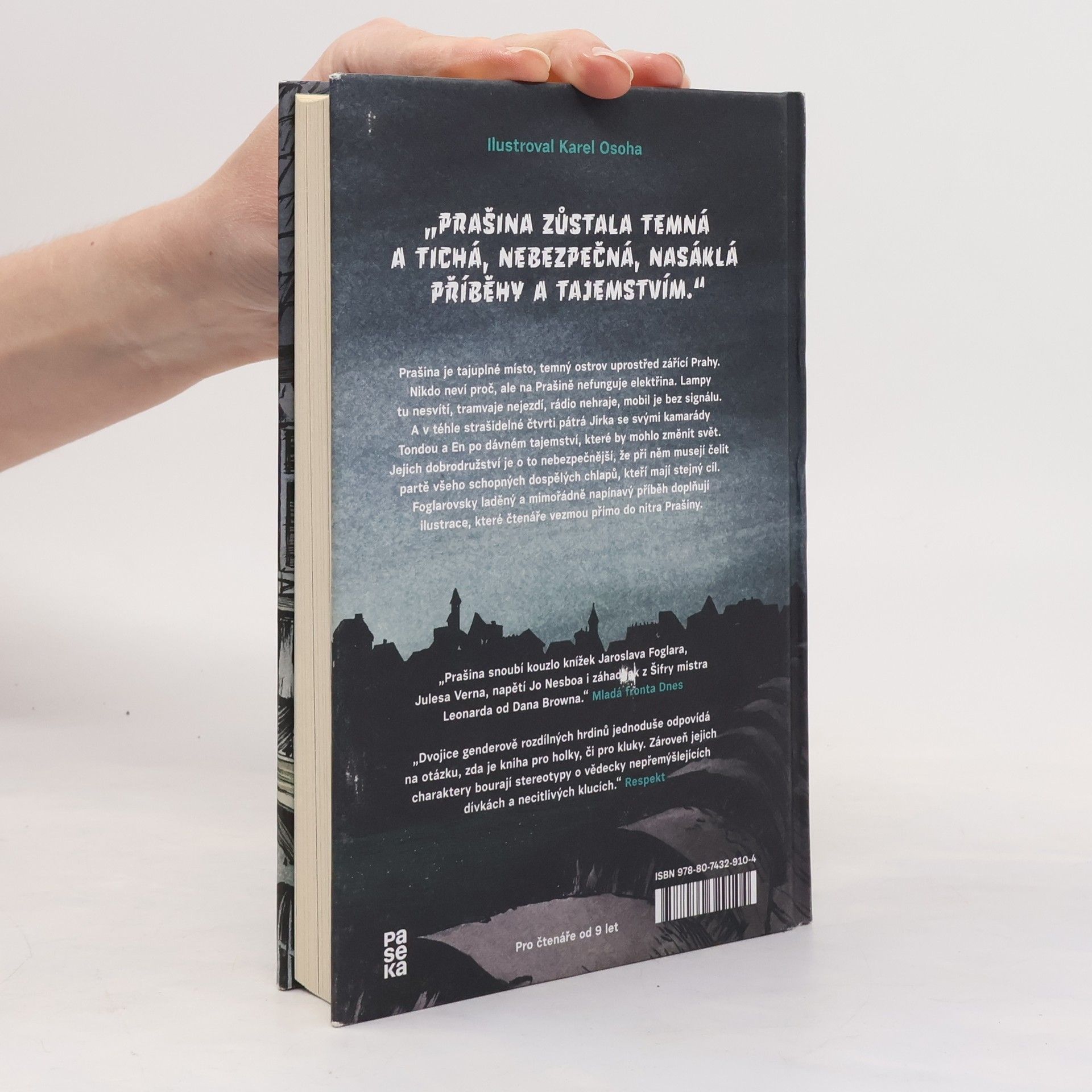 Prašina je tajuplné místo, temný ostrov uprostřed zářící Prahy. Nikdo neví proč, ale na Prašině nefunguje elektřina. Lampy tu nesvítí, tramvaje nejezdí, rádio nehraje, mobil je bez signálu. A v téhle strašidelné čtvrti pátrá Jirka se svými kamarády Tondou a En po dávném tajemství, které by mohlo změnit svět. Jejich dobrodružství je o to nebezpečnější, že při něm musejí čelit partě všeho schopných dospělých chlapů, kteří mají stejný cíl. Foglarovsky laděný a mimořádně napínavý příběh doplňují ilustrace, které čtenáře vezmou přímo do nitra Prašiny.