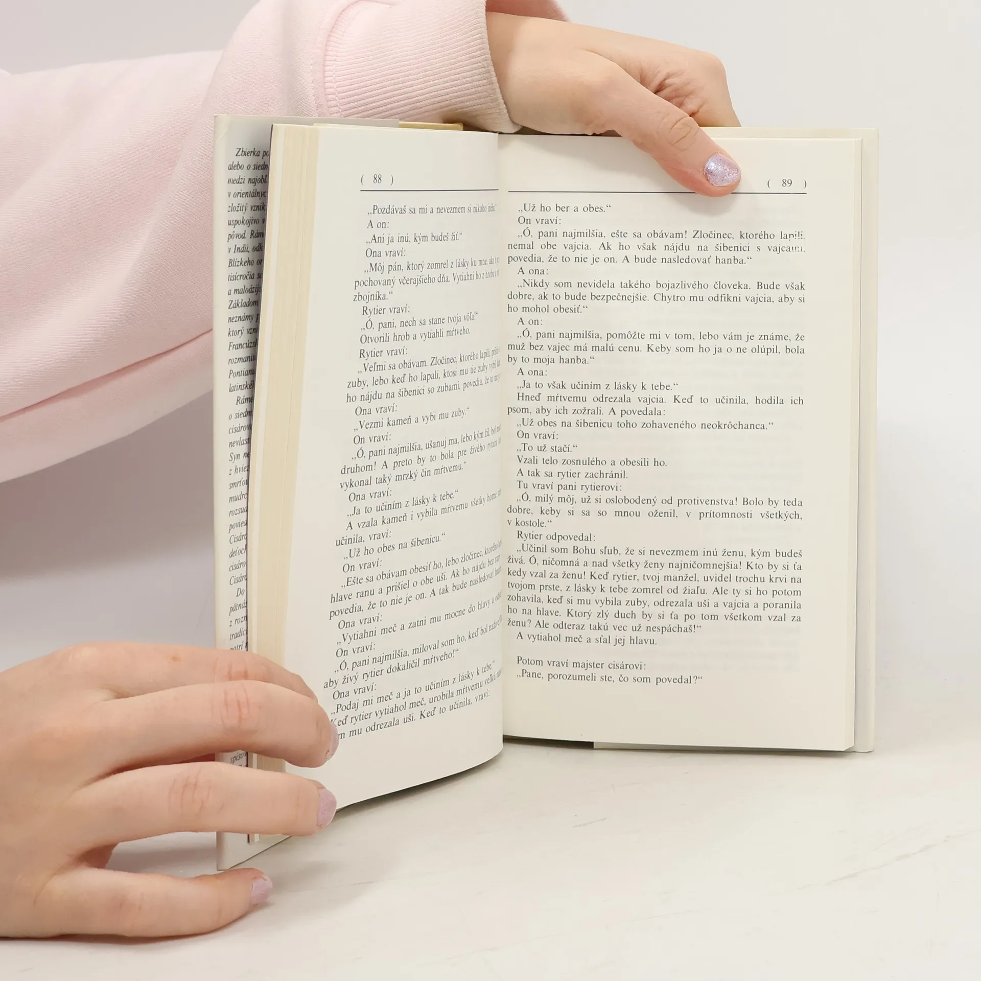 Rámec rozprávania zbierky poviedok o siedmich mudrcoch tvorí príbeh o ľstivej cisárovnej, ktorá nespravodlivo obviní nevlastného syna, že sa ju pokúsil zneuctiť. Syn nemôže vyjaviť pravdu, lebo vyčítal z hviezd, že ak prehovorí, zomrie potupnou smrťou. Cisár ho odsúdi na smrť. Siedmi mudrciodďaľujú po sedem dní vykonanie rozsudku tým, že rozprávajú cisárovi poviedky, najmä o ľstivých a zradných ženách...