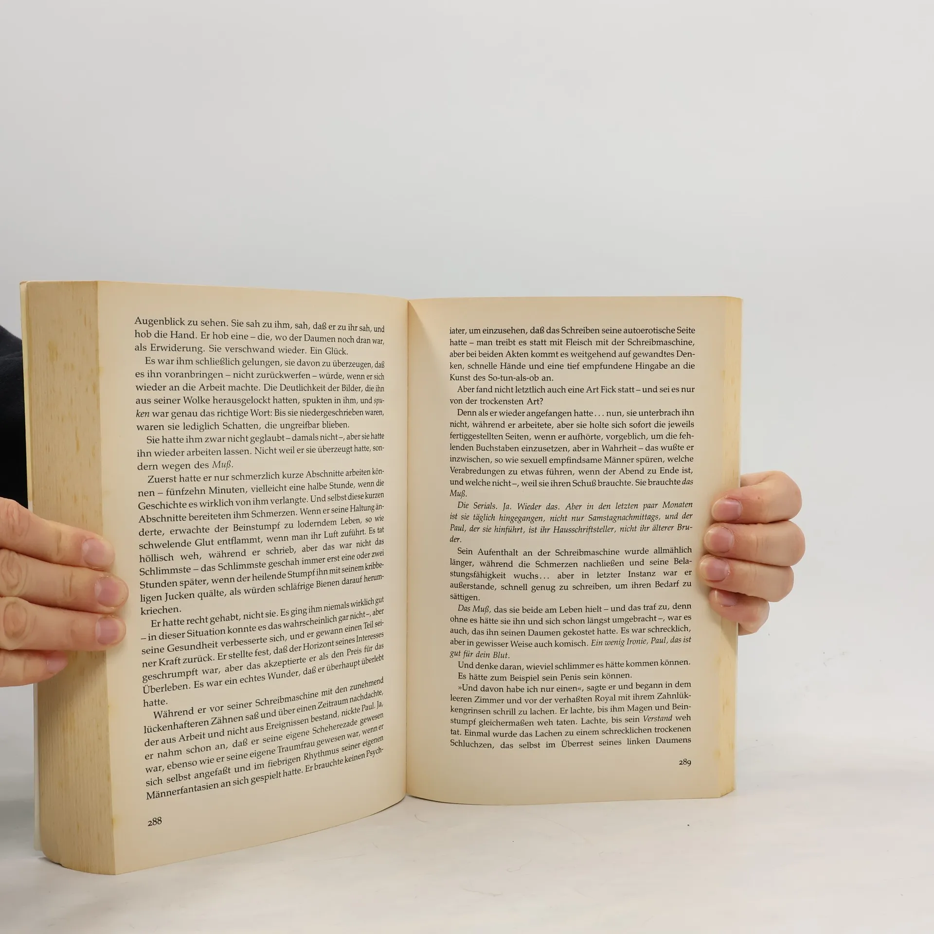 In einem Schneesturm hat der Autor Paul Sheldon einen Autounfall, bei dem er sich beide Beine bricht. Die ehemalige Krankenschwester Annie Wilkes findet Paul und bringt ihn zu sich nach Hause, wo sie ihn auch versorgt. Es stellt sich heraus, daß Annie Paul Sheldons größter Fan ist. Sie verfolgt seine Romane mit der Heldin Misery Chastain geradezu fanatisch. Paul, der Misery in seinem neuesten Manuskript sterben läßt, gibt seiner Wohltäterin Annie den ungedruckten Roman aus Dankbarkeit für ihre Hilfe zu lesen. Doch dann verändert Annie ihr Verhalten gegenüber Paul: Ihre Wutausbrüche wegen Kleinigkeiten häufen sich, und Paul begreift, daß er einer Geisteskranken ausgeliefert ist. Außer sich vor Zorn über den Tod ihrer Lieblingsfigur Misery, zwingt Annie Paul für sie – und nur für sie – einen Roman zu schreiben, in dem Misery weiterlebt. Und Paul muß einsehen, daß das auch für ihn die einzige Überlebenschance bedeutet, denn Annie hat, wie er herausfindet, ein schreckliches Geheimnis...