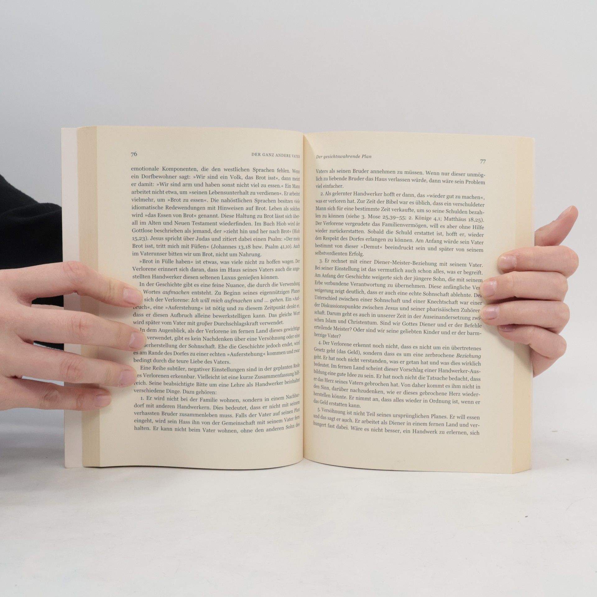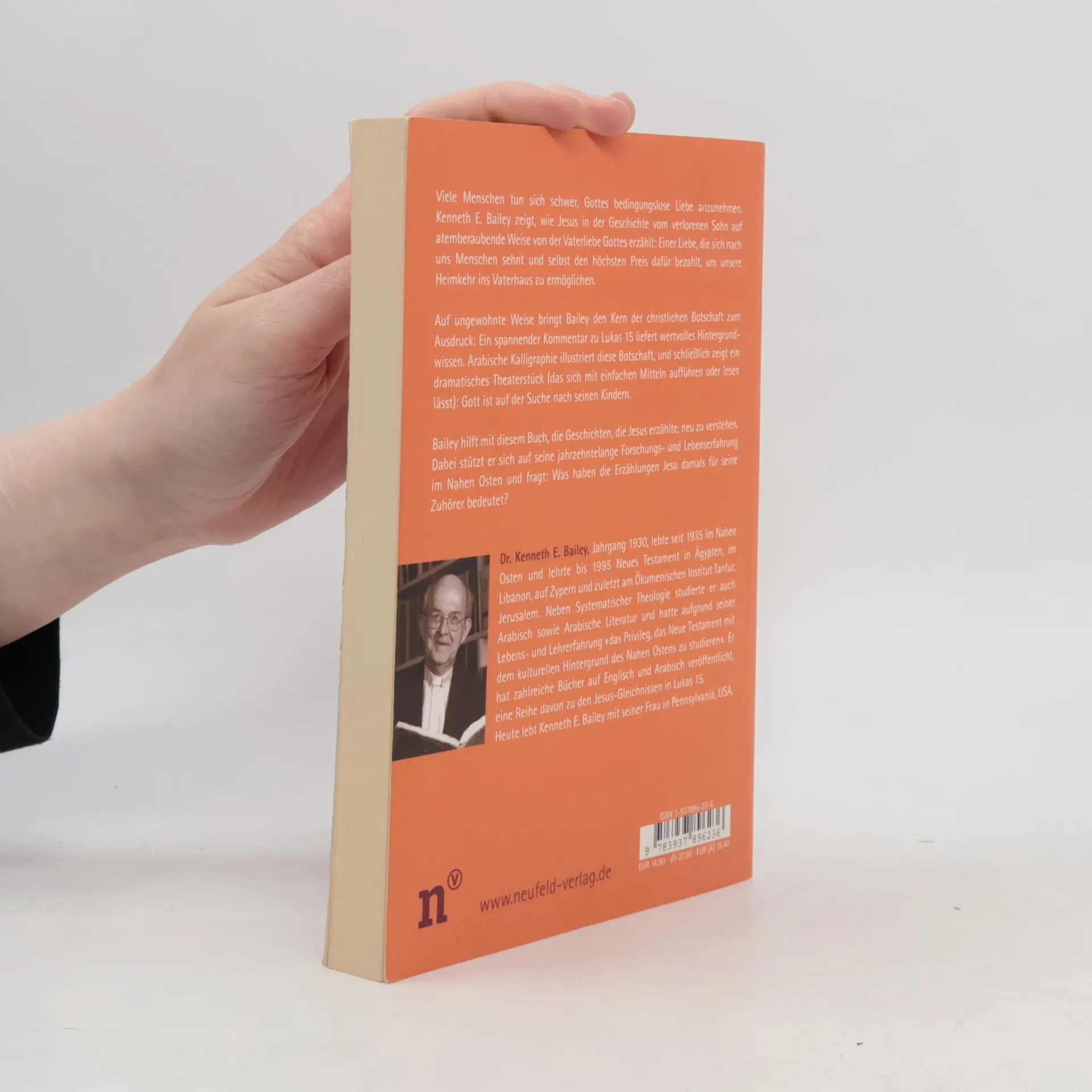 Viele Menschen tun sich schwer, Gottes bedingungslose Liebe anzunehmen. Kenneth E. Bailey zeigt, wie Jesus in der Geschichte vom verlorenen Sohn auf atemberaubende Weise von der Vaterliebe Gottes erzählt: Einer Liebe, die sich nach uns Menschen sehnt und selbst den höchsten Preis dafür bezahlt, um unsere Heimkehr ins Vaterhaus zu ermöglichen. Auf ungewohnte Weise bringt Bailey den Kern der christlichen Botschaft zum Ausdruck: Ein spannender Kommentar zu Lukas 15 liefert wertvolles Hintergrundwissen. Arabische Kalligraphie illustriert diese Botschaft, und schließlich zeigt ein dramatisches Theaterstück (das sich mit einfachen Mitteln aufführen oder lesen lässt): Gott ist auf der Suche nach seinen Kindern. Bailey hilft mit diesem Buch, die Geschichten, die Jesus erzählte, neu zu verstehen. Dabei stützt er sich auf seine jahrzehntelange Forschungs- und Lebenserfahrung im Nahen Osten und fragt: Was haben die Erzählungen Jesu damals für seine Zuhörer bedeutet?