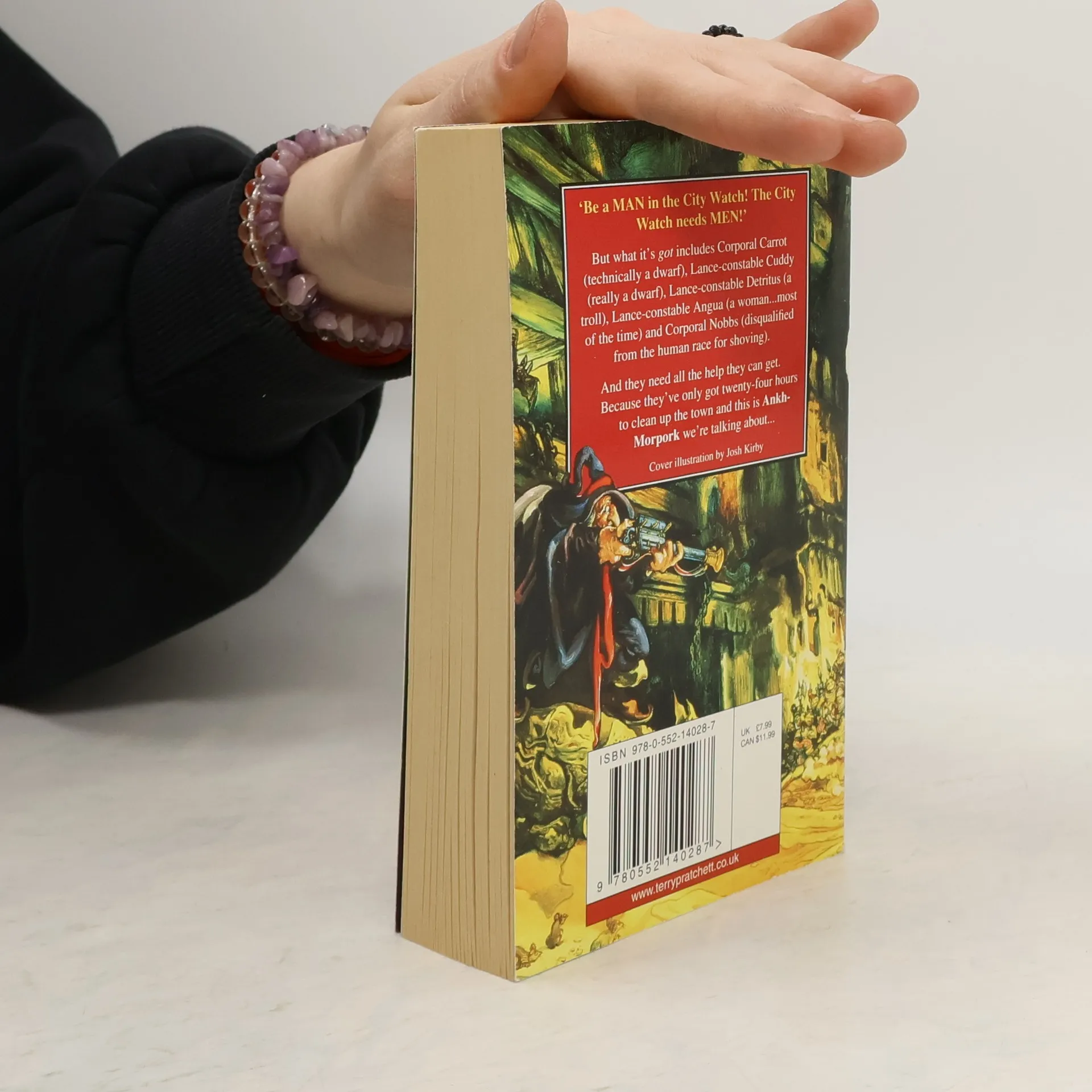 Features Corporal Carrot (technically a dwarf), Lance-constable Cuddy (really a dwarf), Lance constable Detritus (a troll), Lance constable Angua (a woman... most of the time) and Corporal Nobbs (disqualified from the human race for shoving), who've only got twenty-four hours to clean up the town, Ankh-Morpork.