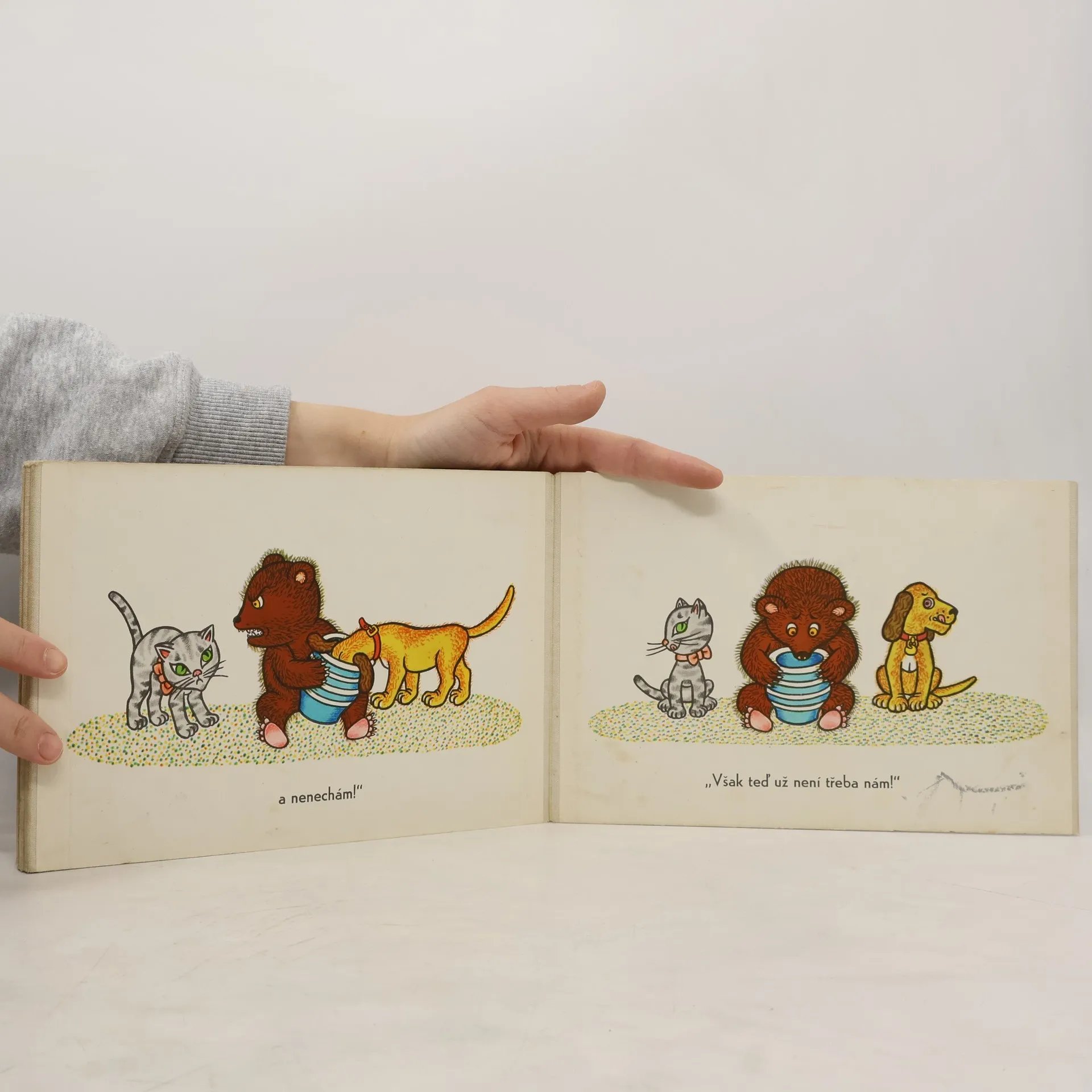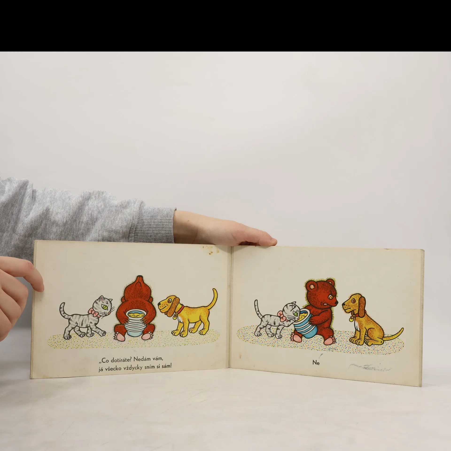 Dvě kratičké veršovánky o lakomém medvědovi, který o obsah svého hrnku stejně nakonec přišel a o ovci, jež se nechtěla dělit o oves s ptáčky, aby s ním nakonec skončila v rybníce.