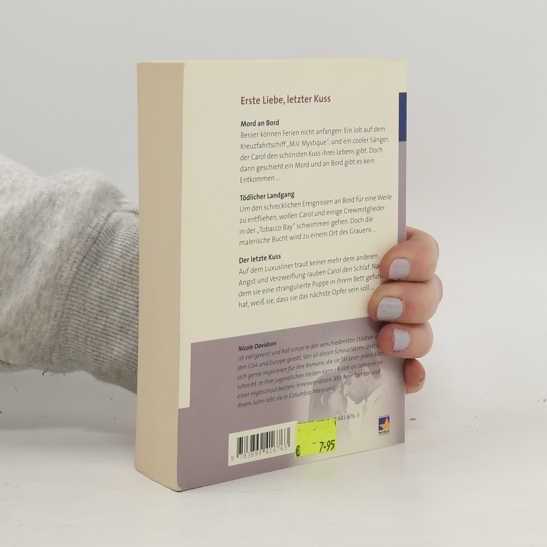 3 Romane in einem Band Mord an Bord Besser können Ferien nicht anfangen: Ein Job auf dem Kreuzfahrtschiff „MS Mystique“, und ein cooler Sänger, der Carol den schönsten Kuss ihres Lebens gibt. Doch dann geschieht ein Mord und an Bord gibt es kein Entkommen… Tödlicher Landgang Um den schrecklichen Ereignissen an Bord für eine Weile zu entfliehen, wollen Carol und einige Crewmitglieder in der "Tobacco Bay" schwimmen gehen. Doch die malerische Bucht wird zu einem Ort des Grauens … Der letzte Kuss Auf dem Luxusliner traut keiner mehr dem anderen. Angst und Verzweiflung rauben Carol den Schlaf. Nachdem sie eine strangulierte Puppe in ihrem Bett gefunden hat, weiß sie, dass sie das nächste Opfer sein soll …
