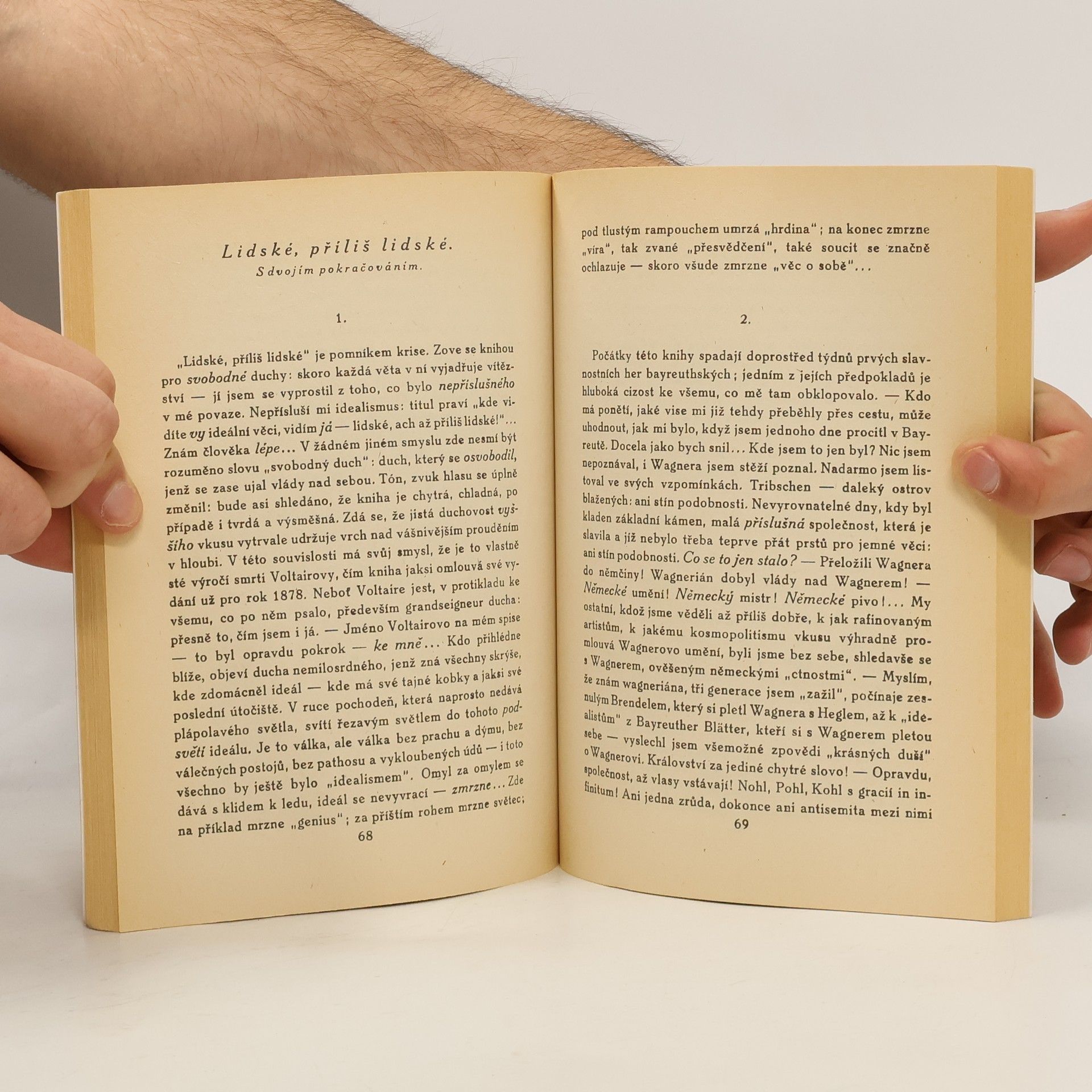 Znám poněkud své výsady spisovatelské; v jednotlivých případech také mám dosvědčeno, jak přivyknutí mým spisům „kazí“ vkus. Nelze pak už prostě snésti jiné knihy, ze všech nejméně knihy filosofické. Je to vyznamenání, jemuž není rovno, vstoupiti do tohoto vyššího a delikátního světa – člověk nesmí k tomu nikterak být Němcem; je to na konec vyznamenání, kterého je třeba si zasloužiti. Ale kdo je se mnou spřízněn výší chtění, prožije přitom pravé ekstase učení: neboť přicházím z výší, jichž nikdy nedoletěl pták, znám propasti do nichž ještě ničí noha nezbloudila. Bylo mi řečeno, že není možné, odložit moji knihu – že prý ruším i noční klid…