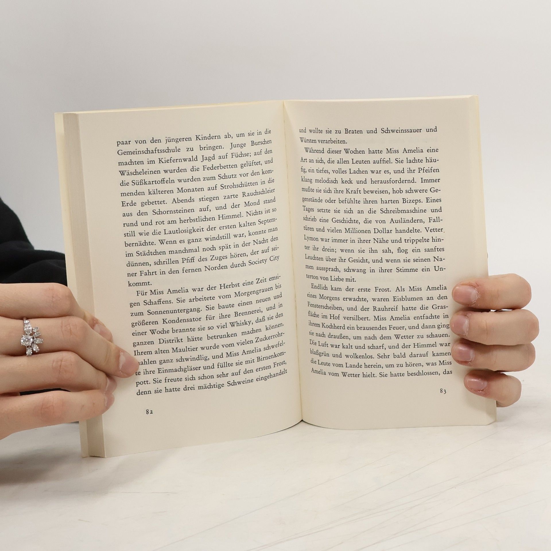 Miss Amelias Café ist die einzige Vergnügungsstätte weit und breit. Dort verkauft die unabhängige und starke Frau ihren selbstgebrannten Schnaps, und dort lebt sie mit Vetter Lymon, einem kleinen buckligen Mann, der gar nicht ihr Vetter ist. Dann jedoch kehrt ihr ehemaliger Mann in die Stadt zurück. - Eine tragische Dreiecksgeschichte aus den amerikanischen Südstaaten über die im Leben ewig zu kurz Kommenden, über Sehnsucht, Verrat, bittere Enttäuschung und kurzes Glück.