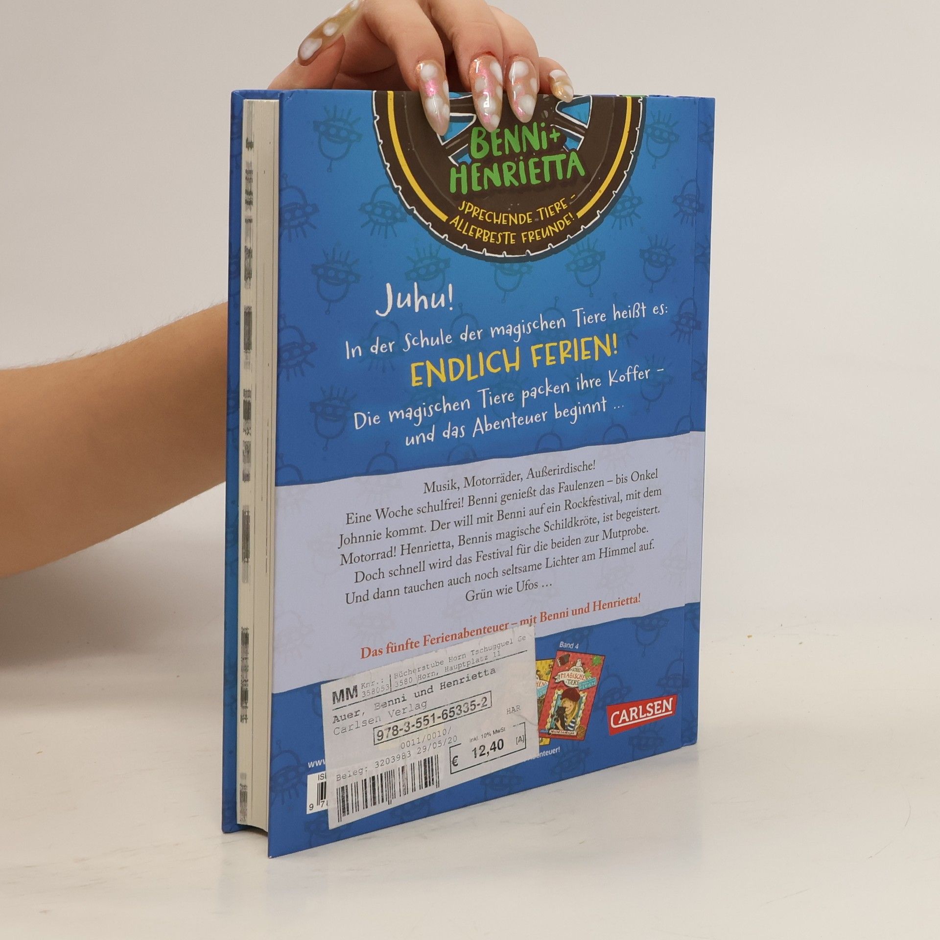 *** Ab in die Ferien – mit einem sprechenden, magischen Tier! *** BAND 5: Eine Woche schulfrei! Benni genießt das Faulenzen – bis Onkel Johnnie kommt. Der will mit Benni auf ein Rockfestival, mit dem Motorrad! Henrietta, Bennis magische Schildkröte, ist begeistert. Doch schnell wird das Festival für die beiden zur Mutprobe. Und dann tauchen auch noch seltsame Lichter am Himmel auf. Grün wie Ufos ... DIE SCHULE DER MAGISCHEN TIERE - ENDLICH FERIEN: In der Schule der magischen Tiere heißt es: Endlich Ferien! Die magischen Tiere packen ihre Koffer – und das Abenteuer beginnt ...