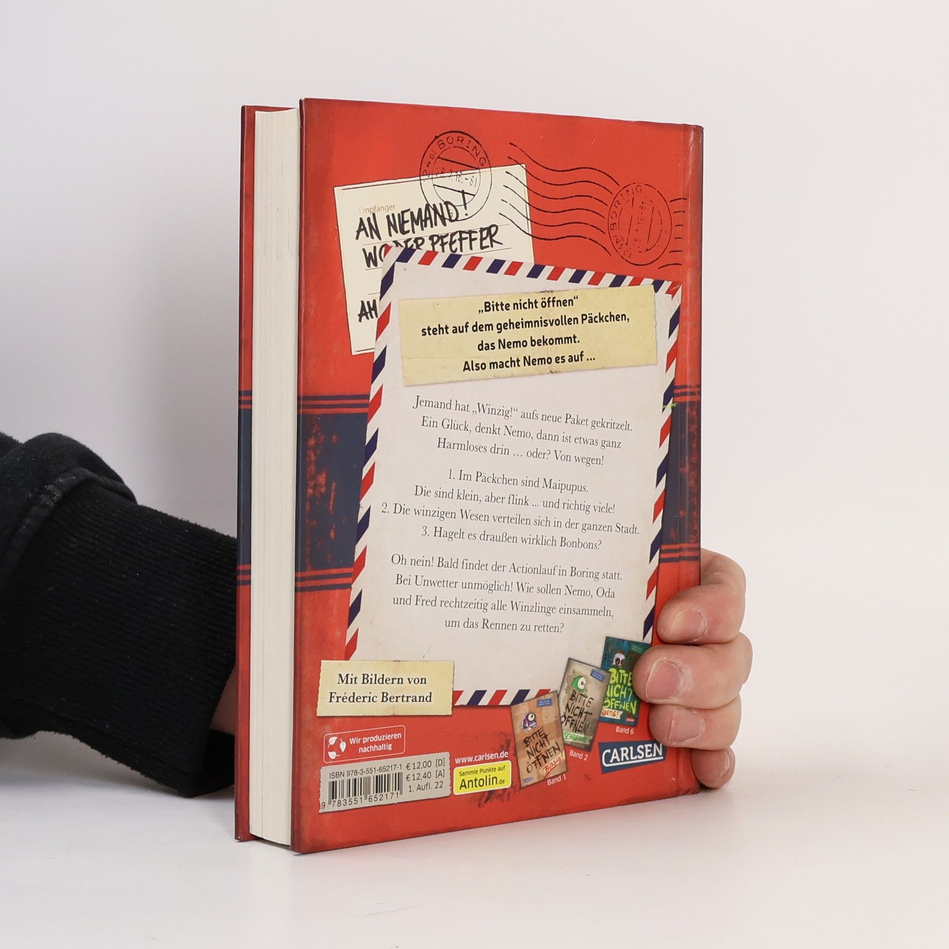 Was ist winzig, wieselflink und lässt Bonbons regnen? Nemos neue Monsterpost! Nachdem die Schwerkraft in Boring wiederhergestellt ist, trifft ein neues Päckchen bei Nemo und seinen Freunden ein. Selbst Fred glaubt, dass nichts Gefährliches darin ist, denn „Winzig!“ steht dick auf dem Deckel. Doch nach dem Öffnen des Pakets schießen viele kleine Wesen heraus. Die Maipupus sind los und verteilen sich rasend schnell in der Stadt! Wie sollen Nemo, Oda und Fred alle hundert Stück wieder einfangen? Immer wieder erhalten die Freunde seltsame Pakete, die sie eigentlich nicht öffnen dürften, aber sie tun es trotzdem – mit katastrophalen Folgen! Aus jedem Paket springt ein Wesen, das nach Hause will, lebendig, riesengroß und selten hilfreich. Die Buchreihe bietet geheimnisvolle Pakete, urkomische Figuren und spannende Abenteuer für Fans von mysteriösen Detektivgeschichten und lustiger Fantasy. Ob Yeti, Drache oder Vampir – jeder Band birgt ein anderes Monster. Mit großer Schrift und vielen Bildern ist es ideal für Leseanfänger*innen und Zweitklässler*innen ab 8 Jahren. Ein verlorenes Wesen, das nach Hause will, drei mutige Freunde und viele Überraschungen – perfekt für abenteuerlustige Mädchen und Jungen zum Vor- oder Selberlesen.