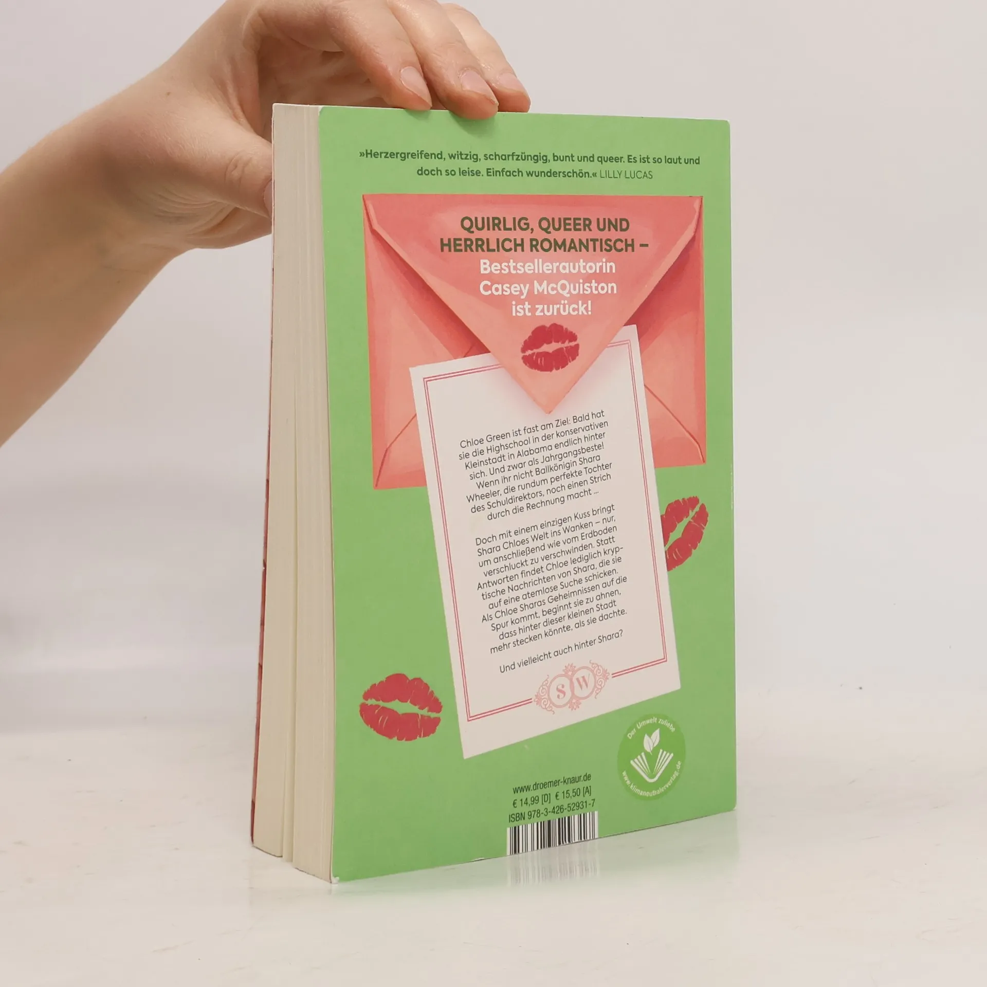 Quirlig, queer und herrlich romantisch erzählt dieser Young-Romance-Liebesroman von einem unerwarteten Kuss, einem plötzlichen Verschwinden und einer turbulenten Suche. Chloe Green, eine queere Schülerin, steht kurz vor dem Abschluss der Highschool in einer engstirnigen Kleinstadt in Alabama, wo sie als Jahrgangsbeste abschließen möchte. Doch Ballkönigin Shara Wheeler, die perfekte Tochter des Schuldirektors, bringt mit einem einzigen Kuss Chloes Welt ins Wanken und verschwindet dann plötzlich. Auf der Suche nach Antworten findet Chloe nur kryptische Nachrichten von Shara, die sie auf eine atemlose Jagd nach Geheimnissen schicken. Während Chloe Sharas Rätsel löst, erkennt sie, dass hinter der kleinen Stadt und Shara selbst mehr steckt, als sie je gedacht hätte. Der Roman verbindet Witz mit liebenswerten Charakteren, bewegenden Themen und einer schönen Botschaft. Es ist eine Geschichte, die romantisch und herzergreifend, witzig und scharfzüngig, bunt und queer ist. Entdecke auch die anderen unkonventionellen romantischen Komödien der Autorin, die mit ihren einzigartigen Erzählungen begeistern.