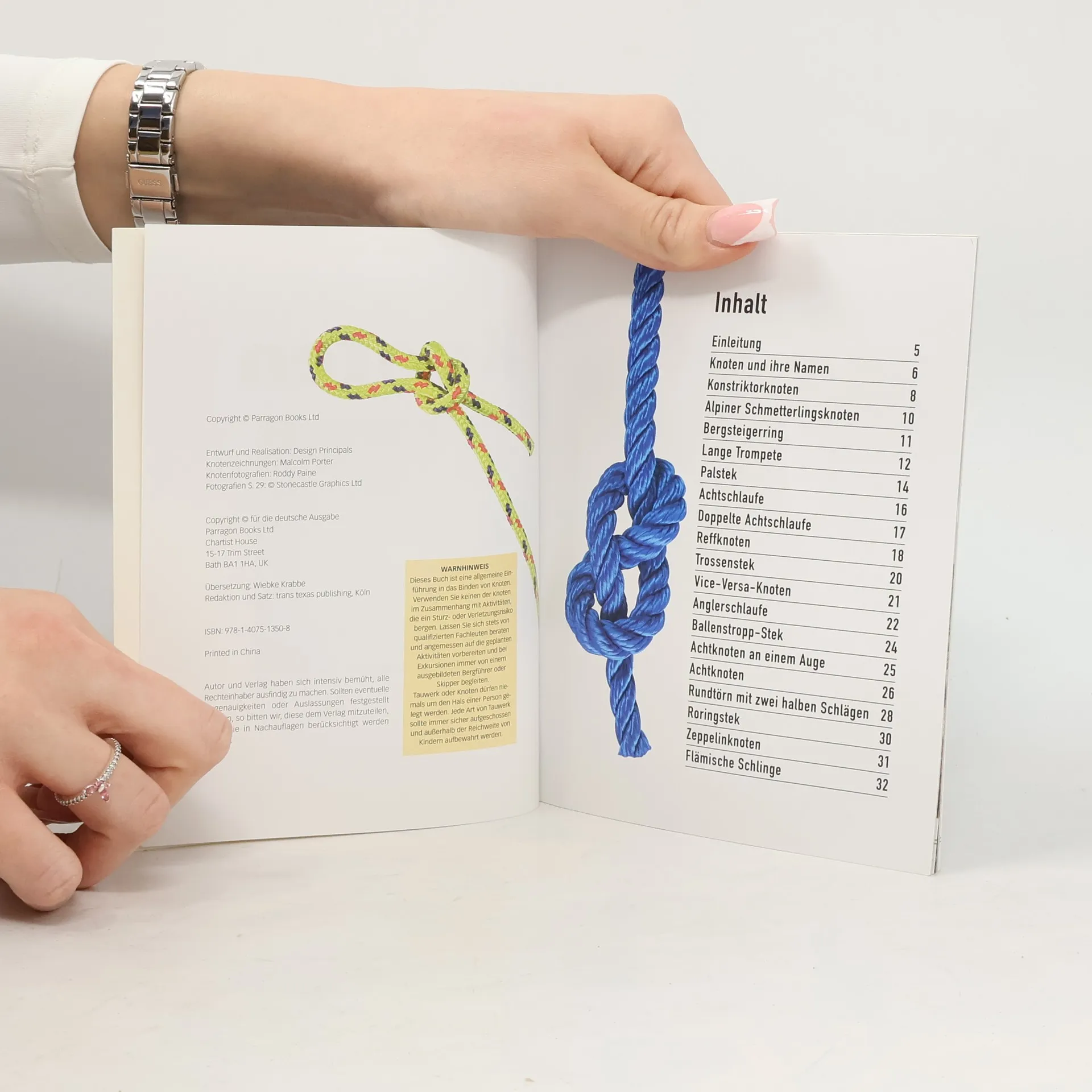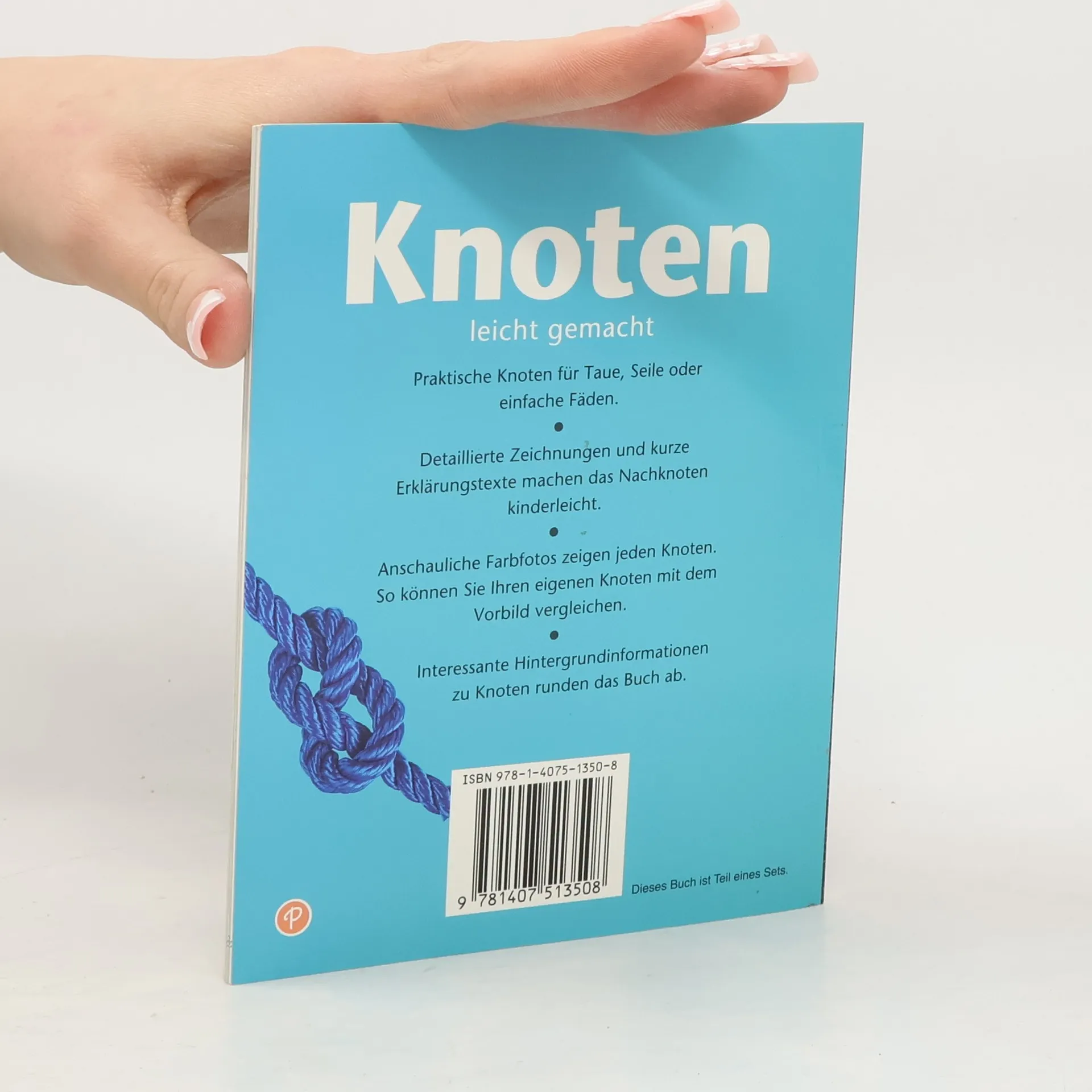 Praktische Knoten für Taue, Seile oder einfache Fäden.Detailierte Zeichnungen und kurze Erklärungstexte machen das Nachknoten kinderleicht.Anschauliche Farbfotos zeigen jeden Knoten. So können Sie Ihren eigenen Knoten mit dem Vorbild vergleichen.Interessante Hintergrundinformationen zu Knoten runden das Buch ab.