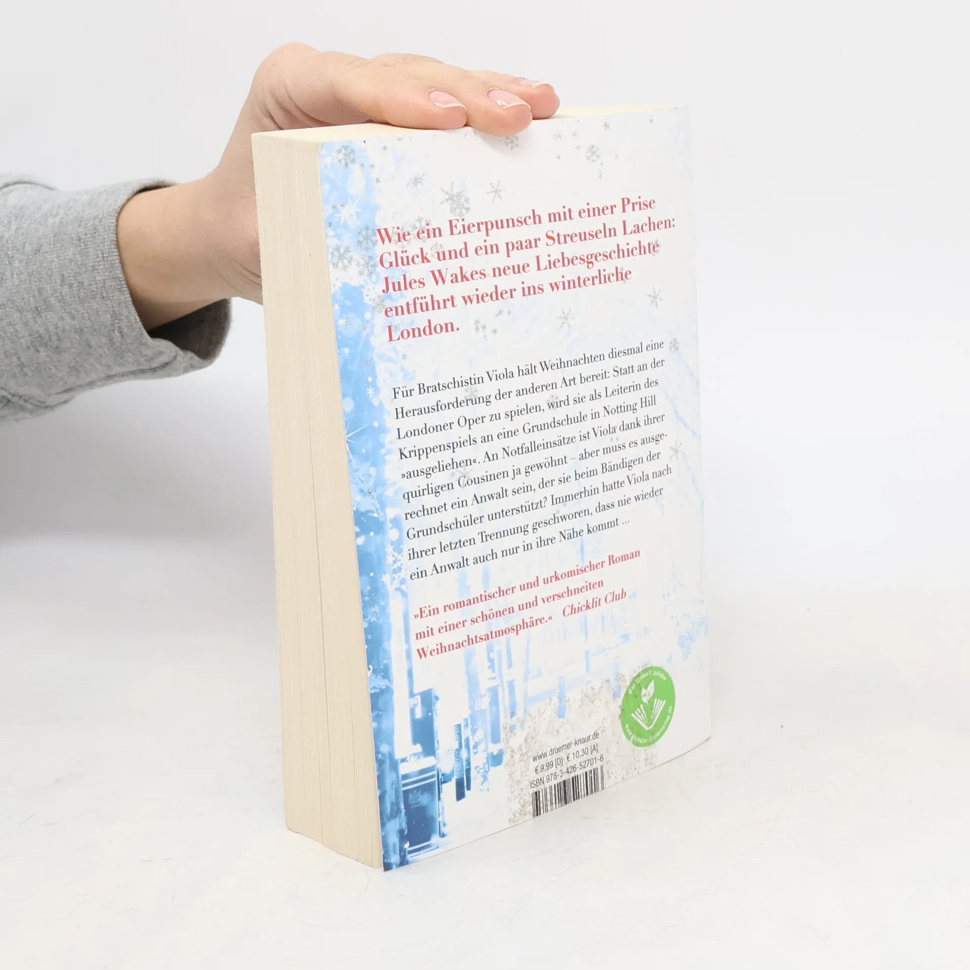 Wie ein Eierpunsch mit einer Prise Glück und ein paar Streuseln Lachen: Jules Wakes humorvoller Liebesroman entführt ins verschneite London kurz vor Weihnachten. Ausgerechnet ein Anwalt! Bratschistin Viola Smith kann es kaum fassen: Erst wird sie von der Londoner Oper an eine Grundschule in Notting Hill abkommandiert, um als Vertretung einer erkrankten Lehrerin das dortige Krippenspiel zu leiten. Und dann soll ihr auch noch ein Anwalt dabei helfen, die Horde quirliger Grundschüler zu bändigen. Dabei hatte Viola sich nach ihrer letzten bösen Erfahrung in Sachen Liebe geschworen, dass nie wieder ein Anwalt auch nur in ihre Nähe kommt! Dummerweise ist Nate Williams nicht nur ausgesprochen attraktiv, sondern auch der Vater der kleinen Hauptdarstellerin … »Notting Hill im Schnee« ist ein humorvoller Liebesroman zum Abtauchen mit frischem Ton, einer liebenswert-tollpatschigen Heldin und viel Romantik. Durch die Seiten weht der Duft von heißen Maronen, und London als Winter-Wunderland möchte man am liebsten sofort besuchen. Entdecke auch »Covent Garden im Schnee«, den ersten humorvollen Liebesroman der britischen Autorin Jules Wake, der ebenfalls an der Londoner Oper im Winter spielt.