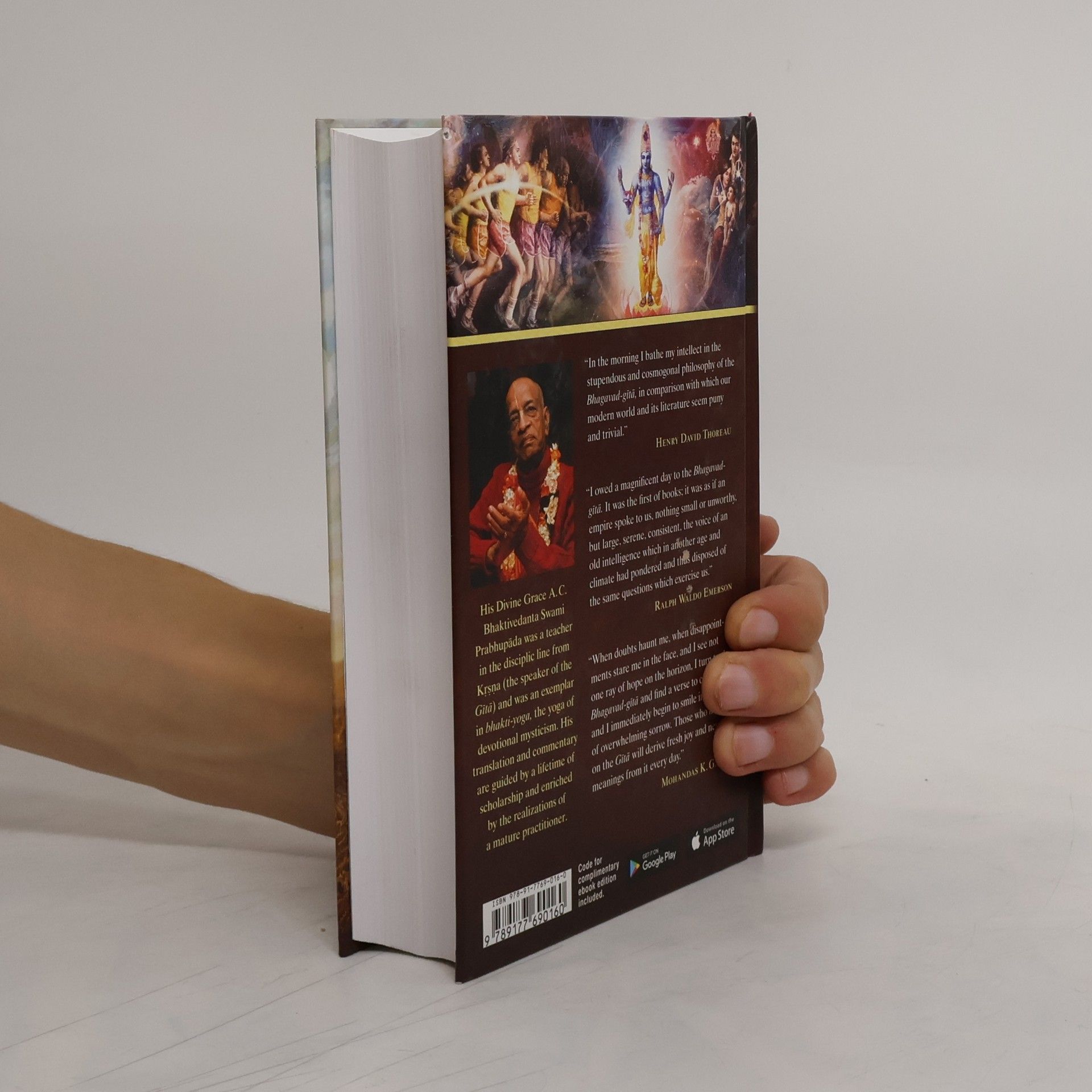 Bhagavad-gita is knowledge of five basic truths and the relationship of each truth to the other: These five truths are Krishna, or God, the individual soul, the material world, action in this world, and time. The Gita lucidly explains the nature of consciousness, the self, and the universe. It is the essence of India's spiritual wisdom, the answers to questions posed by philosophers for centuries. In translating the Gita, A.C. Bhaktivedanta Swami Prabhupada has remained loyal to the intended meaning of Krishna's words, and thus he has unlocked all the secrets of the ancient knowledge of the Gita and placed them before us as an exciting opportunity for self-improvement and spiritual fulfillment.