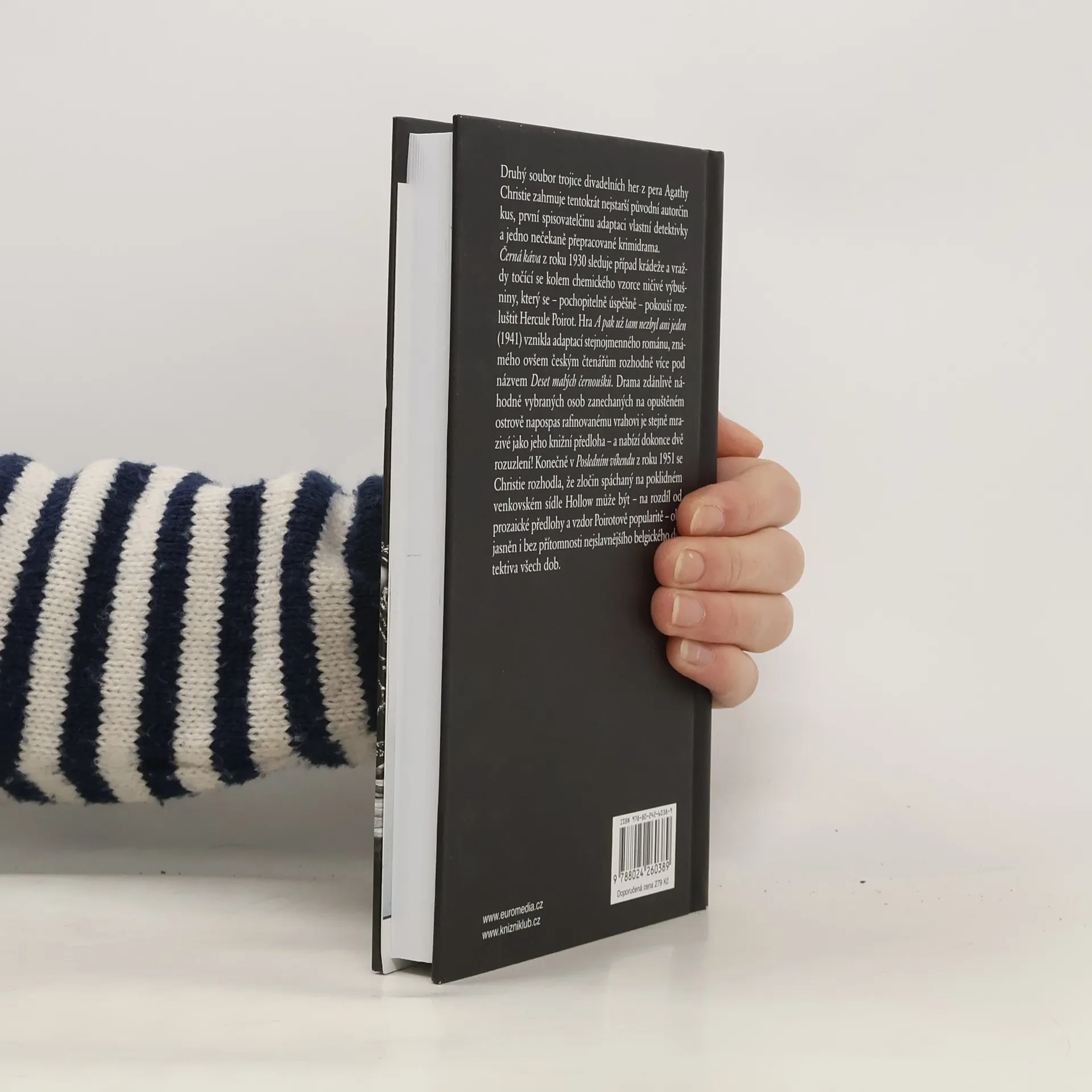 Druhý soubor trojice divadelních her z pera Agathy Christie zahrnuje tentokrát nejstarší původní autorčin kus, první spisovatelčinu adaptaci vlastní detektivky a jedno velice překvapivě přepracované krimidrama. Černá káva z roku 1930 sleduje případ krádeže a vraždy točící se kolem chemického vzorce ničivé výbušniny, který se – pochopitelně úspěšně – pokouší rozluštit Hercule Poirot. Hra A pak už tam nezbyl ani jeden (1941) vznikla adaptací stejnojmenného románu, známého ovšem rozhodně více pod názvem Deset malých černoušků – drama zdánlivě náhodně vybraných osob zanechaných na opuštěném ostrově napospas rafinovanému vrahovi je stejně mrazivé jako jeho knižní předloha. A v Posledním víkendu z roku 1951 se Christie rozhodla, že zločin spáchaný na poklidném venkovském sídle Hollow, může být – na rozdíl od prozaické předlohy – objasněn i bez přítomnosti nejslavnějšího belgického detektiva všech dob.