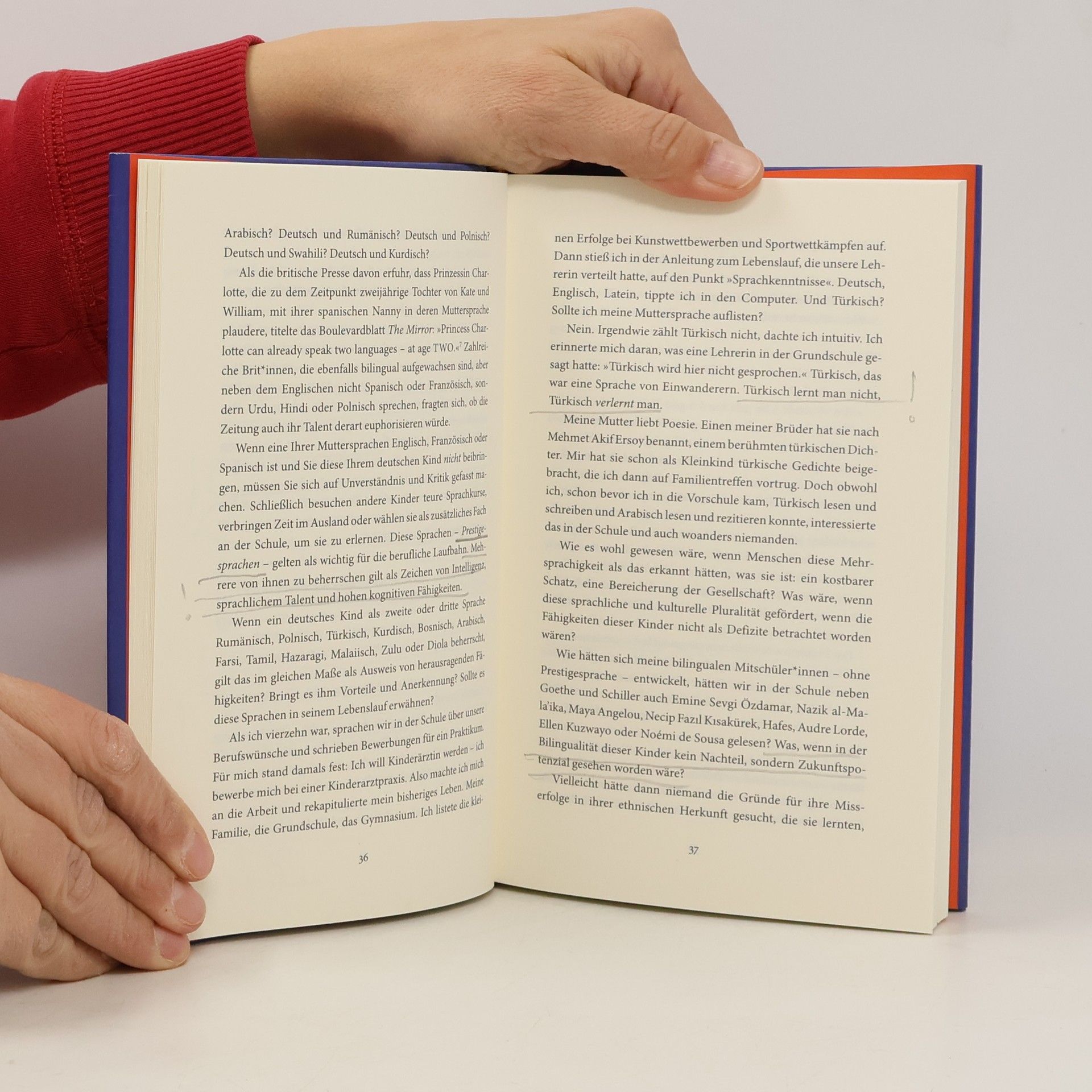 Kübra Gümüşay beschreibt wie Sprache unser Denken prägt und unsere Politik bestimmt. „Ein beeindruckendes Buch, poetisch und politisch zugleich.“ Margarete Stokowski Dieses Buch folgt einer Sehnsucht: nach einer Sprache, die Menschen nicht auf Kategorien reduziert. Nach einem Sprechen, das sie in ihrem Facettenreichtum existieren lässt. Nach wirklich gemeinschaftlichem Denken in einer sich polarisierenden Welt. Kübra Gümüşay setzt sich seit langem für Gleichberechtigung und Diskurse auf Augenhöhe ein. In ihrem ersten Buch geht sie der Frage nach, wie Sprache unser Denken prägt und unsere Politik bestimmt. Sie zeigt, wie Menschen als Individuen unsichtbar werden, wenn sie immer als Teil einer Gruppe gesehen werden – und sich nur als solche äußern dürfen. Doch wie können Menschen wirklich als Menschen sprechen? Und wie können wir alle – in einer Zeit der immer härteren, hasserfüllten Diskurse – anders miteinander kommunizieren?
