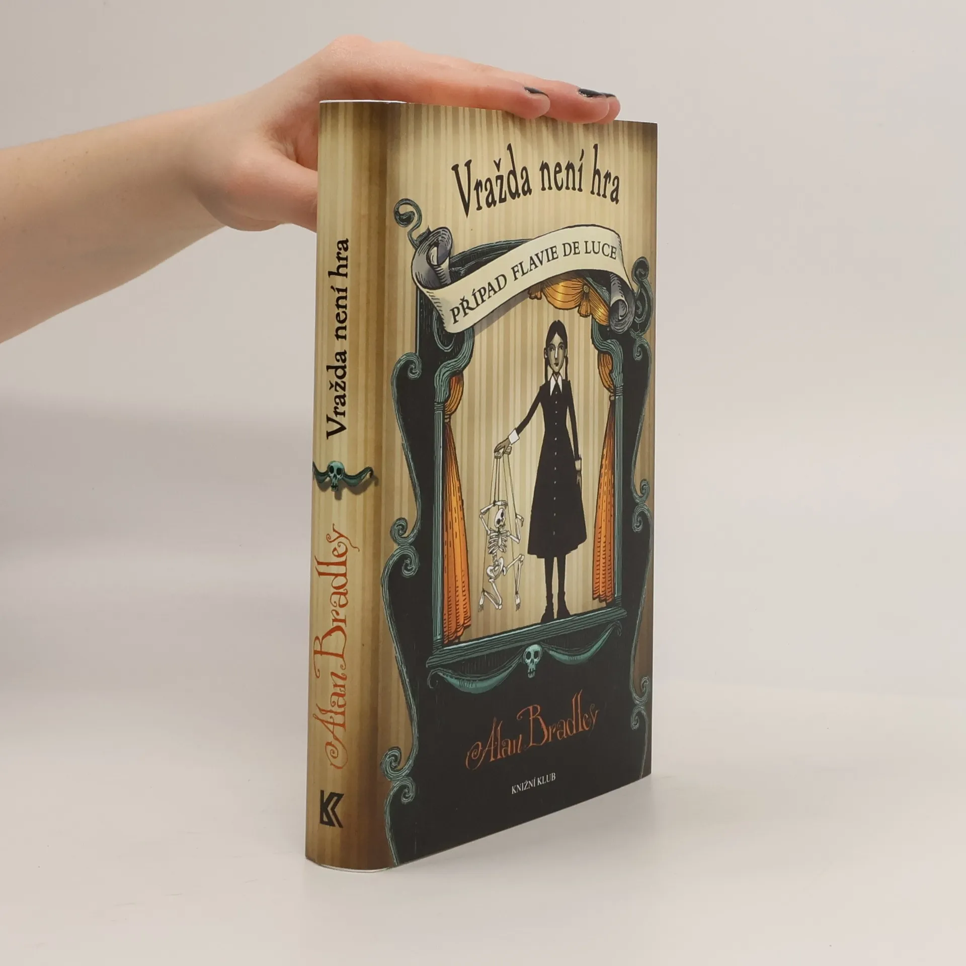 Jedenáctiletou Flavii de Luce, hrdinku originálních, vtipných a napínavých románů, nudí život s otcem a nemilovanými sestrami na venkovském sídle. O to víc ji od malička fascinují chemie, jedy a smrt. Na začátku svého nového detektivního vyprávění leží mrtvá na hřbitově v Bishop's Lacey. Zvědavá kavka ale odhalí, že svůj stav jen předstírá, a vzápětí už táto odvážná, inteligentní a často pronikavě ironická dívka vstupuje do dalšího příběhu, ve kterém samozřejmě dojde i na vraždu...Na místním hřbitově se náhodně setká s plačící dívkou jménem Nialla, asistentkou slavného loutkoherce Ruperta Porsona. Ve vesnici oba uvízli kvůli porouchanému autu a místní vikář je přemluví, aby uspořádali představení. Malá Flavia loutkohercům pomáhá, a jak už to tak u ní bývá, zároveň si dává dvě a dvě dohromady. Záhy je jí například jasné, že to mezi Rupertem a Niallou tak úplne neklape, a že oba dva něco tají. Schyluje se k inscenaci pohádky Jakub a fazole. Ale také k zločinu. A z minulosti se vynoří jedna místní tragédie... První vydání