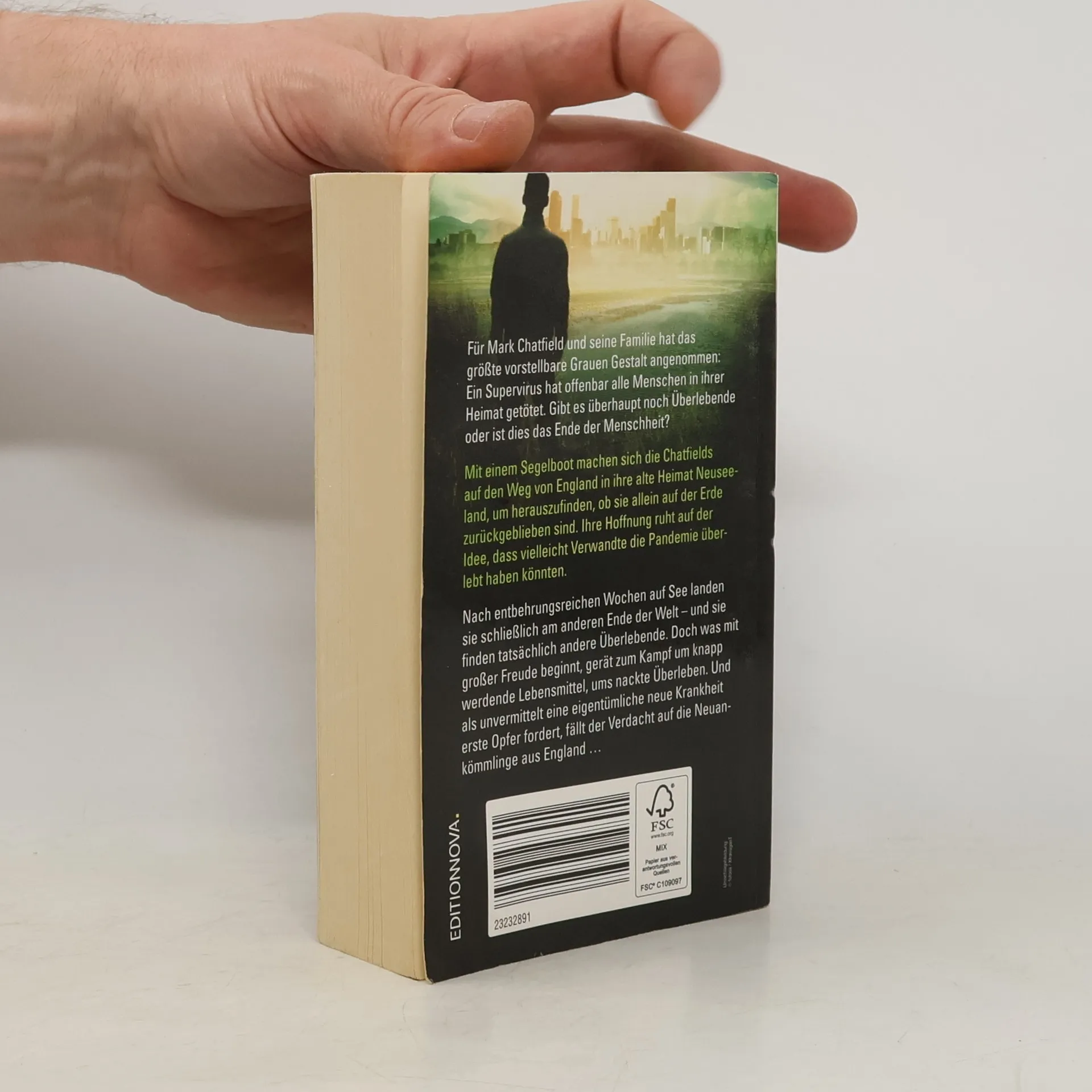 Die Welt, wie wir sie kennen, existiert nicht mehr. Ein Supervirus hat beinahe die gesamte Menschheit ausgelöscht. Mark Chatfield und seine Familie sind immun gegen die Krankheit. Auf der Suche nach anderen Überlebenden segeln sie nach Australien. Was sie dort erwartet, übersteigt den bisherigen Schrecken: Denn offenbar war die globale Pandemie kein Zufall. Mark könnte selbst dafür verantwortlich sein.