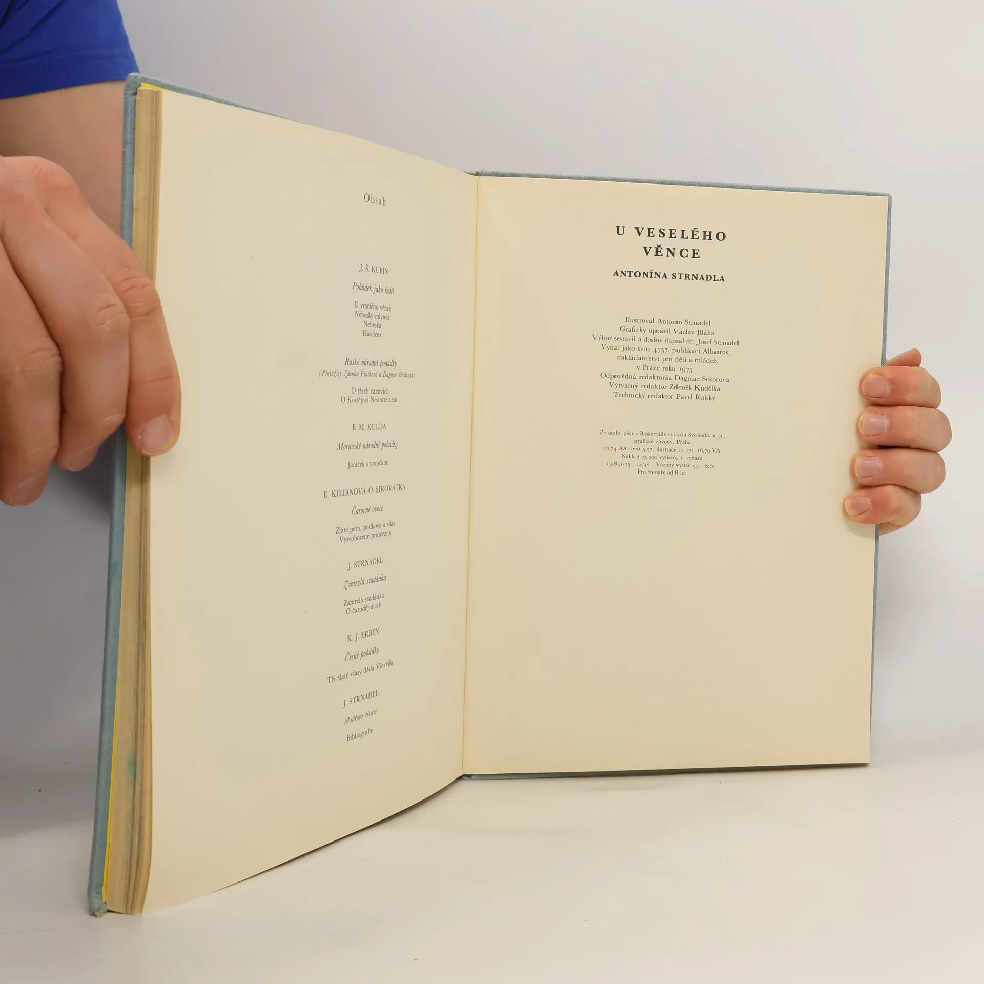 Výbor českých, moravských a ruských pohádek - sestavil a doslov "Malířovo dětství" napsal Josef Strnadel. Pořadatel zařadil do knihy české a moravské pohádky J.Š. Kubína (U veselého věnce, Nebeský mlýnek, Nebeská, Havlíček), B.M. Kuldy (Janíček s voničkou), E. Kiliánové - O. Sirovátky (Zlaté pero, podkova a vlas, Vysvobozené princezny), K.J. Erbena (Tři zlaté vlasy děda Vševěda) i pohádky své (Zamrzlá studánka, O čarodějnicích), a překlady ruských národních pohádek (O třech carstvích, O Kostějovi Nesmrtelném), které pro nejrůznější knižní vydání ilustroval malíř, grafik a ilustrátor A. Strnadel. Pro čtenáře od 8 let.