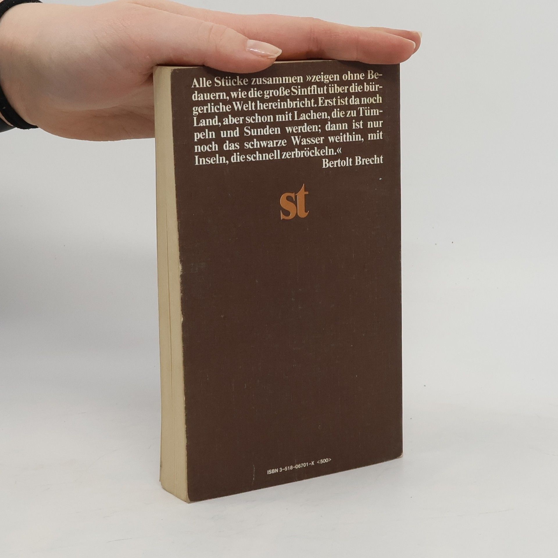 "Alle Stücke zusammen »zeigen ohne Bedauern, wie die Sintflut über die bürgerliche Welt hereinbricht. Erst ist da noch Land, aber schon mit Lachen, die Tümpeln und Sunden werden; dann ist nur noch das schwarze Wasser weithin, mit Inseln, die schnell zerbröckeln« Bertolt Brecht"