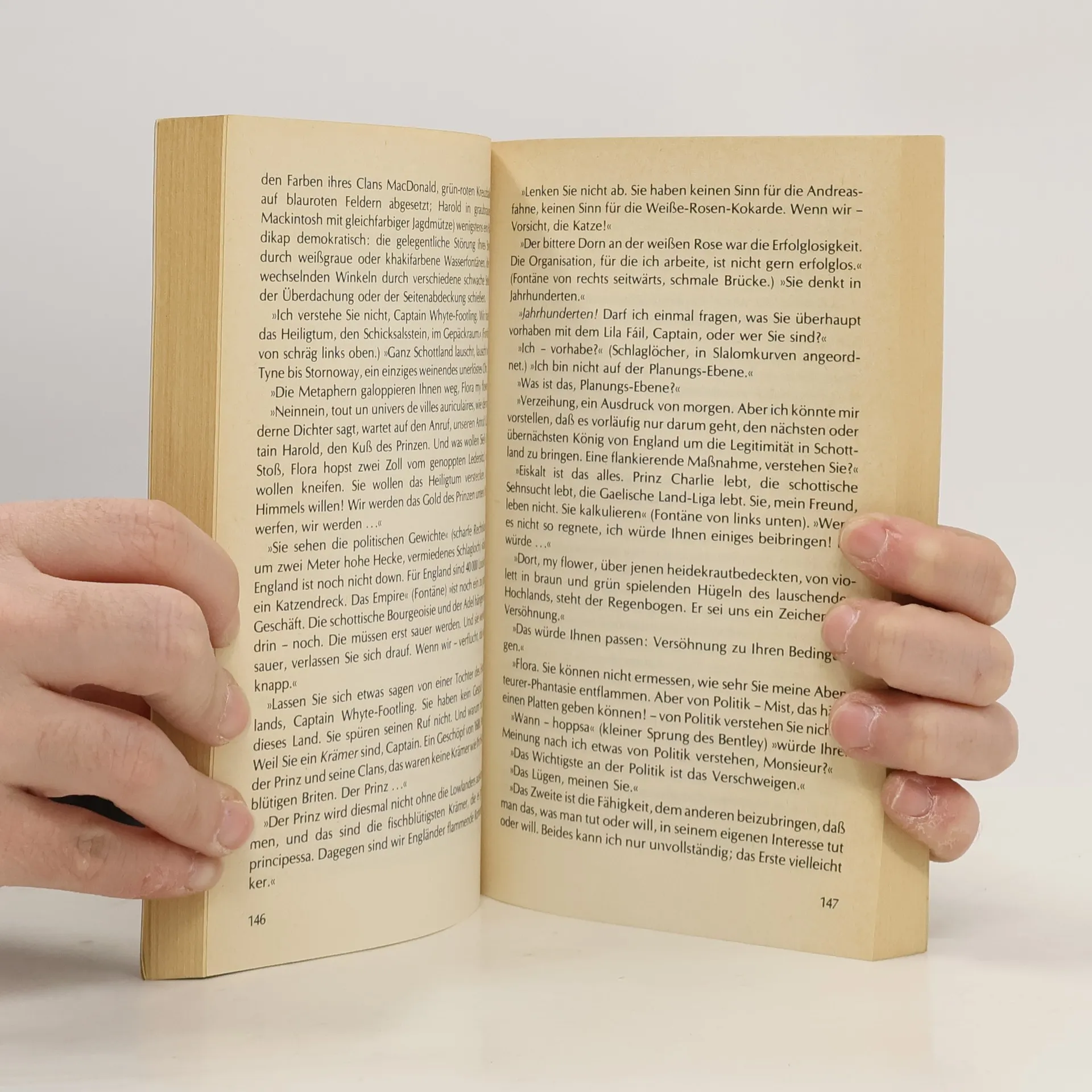 Seit Jahrhunderten existieren geheime Pläne im Vatikan, so geheim, dass selbst der Papst offiziell nichts davon weiß. Mithilfe einer von Leonardo da Vinci konstruierten Raum-Zeitmaschine sollen unerschrockene Schweizer Soldaten in die Vergangenheit geschickt werden, um kleine Korrekturen an der Geschichte vorzunehmen und die Glaubensspaltung zu beseitigen. Ihr ehrgeizigstes Unternehmen ist die Wiedereinsetzung der Stuarts in Schottland, um England für Rom zurückzugewinnen. Der Wittelsbacher Kronprätendent Rupprecht soll auf den Thron gelangen, basierend auf einer grotesken genealogischen Konstruktion. Der Schweizer Gardist Arnold Füßli erhält den Auftrag, den schottischen Krönungsstein aus Westminster zu rauben und einen alten Goldschatz zur Finanzierung zu sichern. Die Erzählung wechselt munter zwischen verschiedenen Stilebenen und Idiomen, von bajuwarisch bis gälisch. Am Ende triumphiert die keltische Sache über intrigante Rationalität. Carl Amery präsentiert eine historische Nonsens-Revue voller phantastisch-skurriler Gags und spannt einen schillernden Bogen vom Land der Gamsbärte bis zur schottischen Hochebene. Das Werk ist eine köstliche Satire und unterhaltsame Science-Fiction, die in dieser Form neu und erfrischend ist.