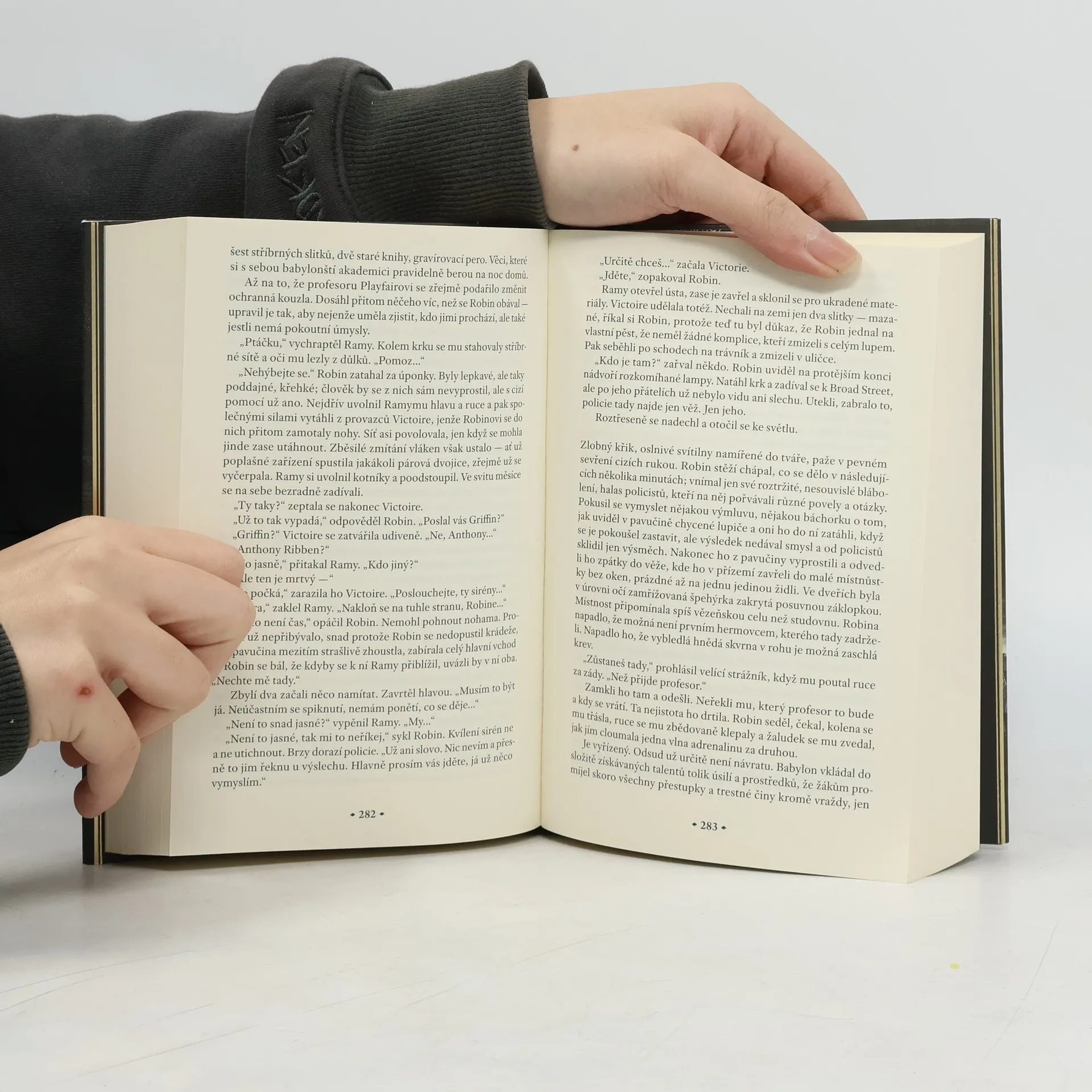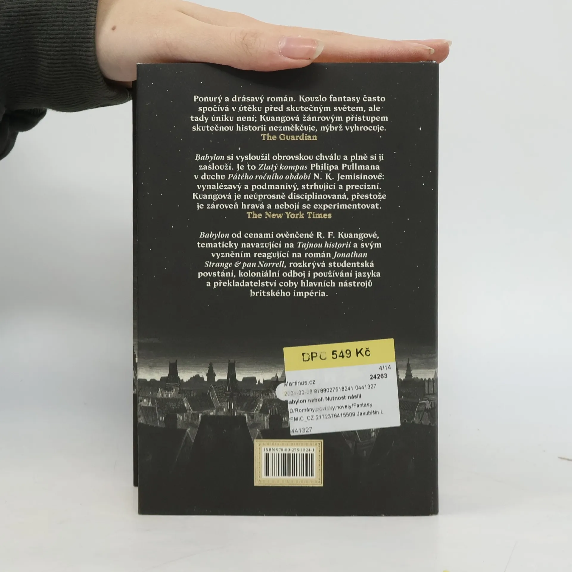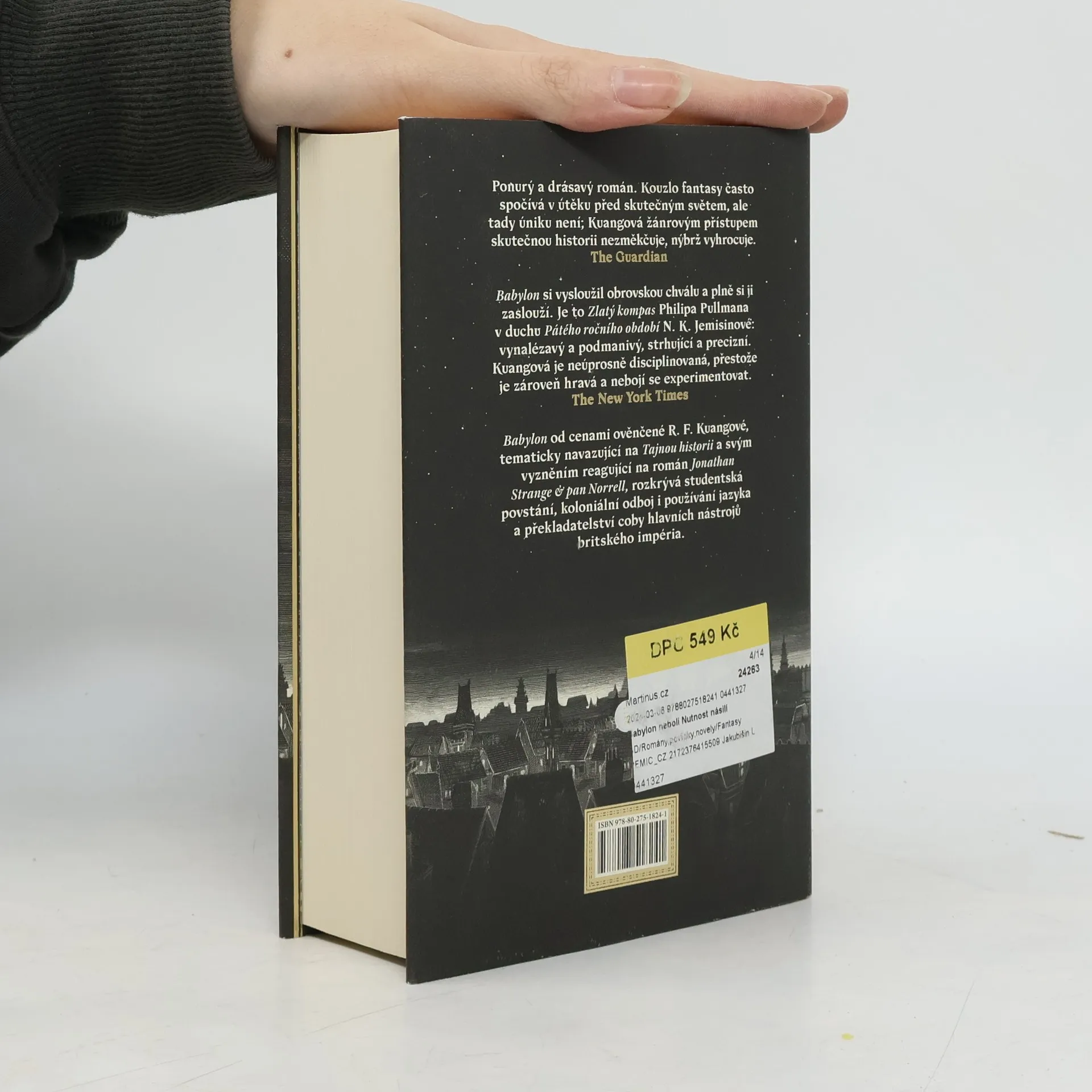 Román z alternativní historie prodchnutý magií od autorky bestselleru Maková válka. Traduttore, traditore: Akt překladu je vždy aktem zrady. Rok 1828. Sirotka Robina Swifta odveze tajemný profesor Lovell z Kantonu do Londýna. Tam Robin celé roky studuje klasické jazyky a čínštinu a připravuje se na den, kdy nastoupí na prestižní Královský ústav překladatelství při Oxfordské univerzitě. Tento ústav, zvaný též Babylon, je hlavním světovým střediskem překladatelství a také magie. Stříbrodělství, umění zhmotňovat význam ztracený v překladu pomocí kouzelných stříbrných slitků, poskytlo Britům nevídanou moc a teď se uplatňuje při kolonizačních snahách impéria. Pro Robina je Oxford utopií, jež žije věděním. Vědění je však poslušné moci a Robin jako mladý Číňan vychovaný v Británii pochopí, že sloužit Babylonu znamená zrazovat svou vlast. Začne váhat mezi Babylonem a tajným spolkem Hermés, usilujícím o zastavení imperiální expanze. Když se Británie vrhne kvůli stříbru a opiu do nespravedlivé války s Čínou, Robin se musí rozhodnout Lze změnit vlivné instituce zevnitř, nebo se revoluce skutečně neobejde bez násilí?