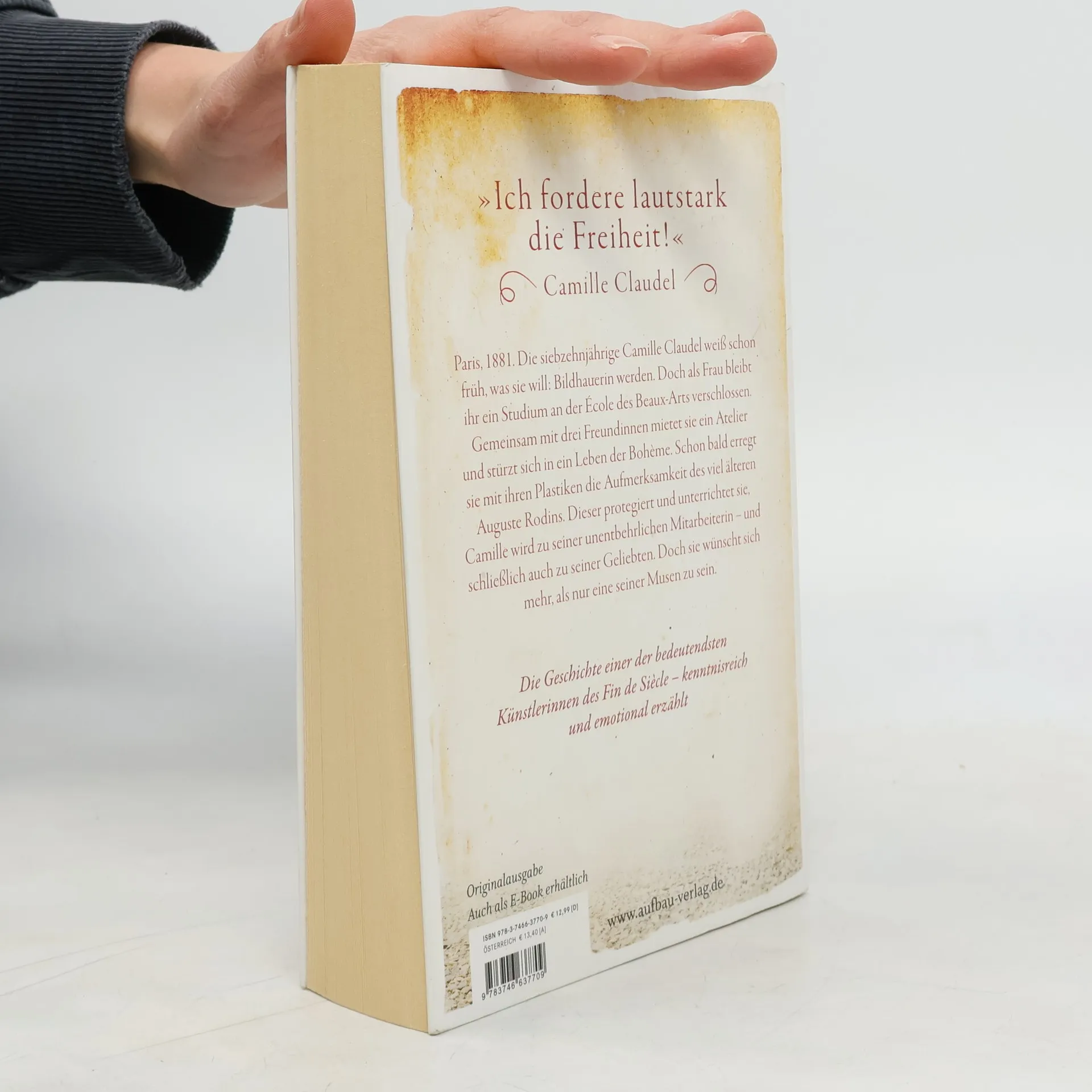 „Ich fordere lautstark die Freiheit!“ – Camille Claudel. Paris, 1881. Die siebzehnjährige Camille Claudel weiß schon früh, was sie will: Bildhauerin werden. Doch als Frau bleibt ihr ein Studium an der École des Beaux-Arts verschlossen. Gemeinsam mit drei Freundinnen mietet sie ein Atelier und stürzt sich in ein Leben der Bohème. Schon bald erregt sie mit ihren Plastiken die Aufmerksamkeit des viel älteren Auguste Rodins. Dieser protegiert und unterrichtet sie, Camille wird zu seiner unentbehrlichen Mitarbeiterin – und schließlich auch zu seiner Geliebten. Doch sie wünscht sich mehr, als nur eine seiner Musen zu sein. Die Geschichte einer der bedeutendsten Künstlerinnen des Fin de Siècle – kenntnisreich und emotional erzählt