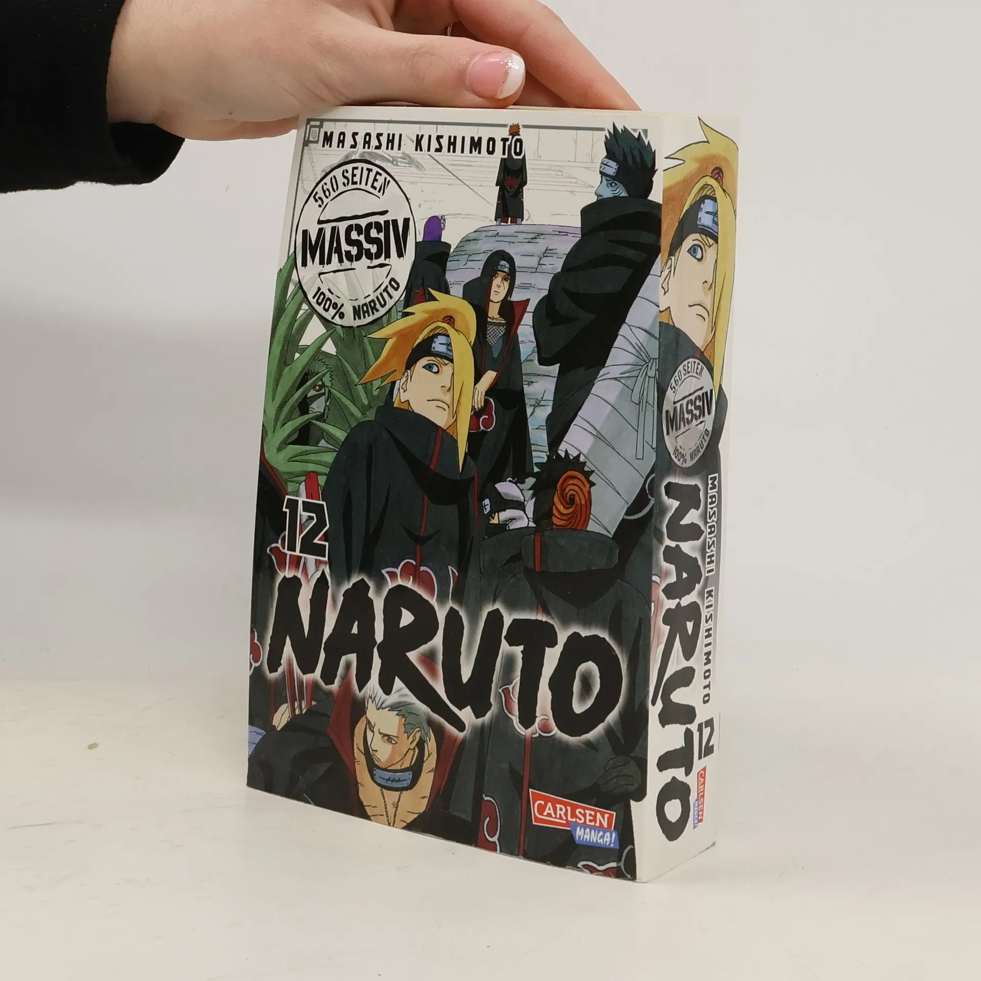 Erlebe atemberaubende Abenteuer und Ninja-Action mit NARUTO! Jetzt als tolle Sammelbandedition mit insgesamt 24 Bänden im größeren Format und neuen Covermotiven! Die Gruppe Sieben gelangt zwar an ihr Ziel, aber das Treffen mit einem Spion erweist sich als Orochimarus Falle. Dennoch gelingt es Naruto und seinen Kameraden Orochimarus Versteck zu finden. Dort sehen sie endlich Sasuke wieder. Aber von seinen Rachegelüsten besessen, verschwindet Sasuke wieder mit Orochimaru… Dass er Sasuke nicht zurückgewinnen kann, führt Naruto die eigene Schwäche vor Augen. Unterdessen beginnt »Akatsuki« eine regelrechte Jagd auf Biju…! Band 12 der Naruto-Massiv Reihe enthält die Kapitel 313 - 342. Für Fans von One Piece, My Hero Academia, Demon Slayer, Jujutsu Kaisen, Dragon Ball, Dr. Stone und Fairy Tail! Massiv-Highlight in Band 12: Die mysteriöse Organisation »Akatsuki«, bestehend aus Verbrechern vom S-Rang, jagt Biju… Was für eine böse Absicht steckt dahinter?! Ihr nächstes Ziel lautet das Kyubi, Naruto!! - Hidan & Kakuzu reisen nach Hi-no-Kuni… - Narutos Training, um eine neue Kunst zu entwickeln! - Asuma-Gruppe vs. Hidan - Die 10. Gruppe und Kakashi in Trauer kämpfen zusammen! - Shikamaru bestraft Hidan! - Kakashi führt einen harten Kampf gegen Kakuzu! - Narutos neue Kunst ist erst zu 50% entwickelt! Ist sie schon einsatzbereit?!