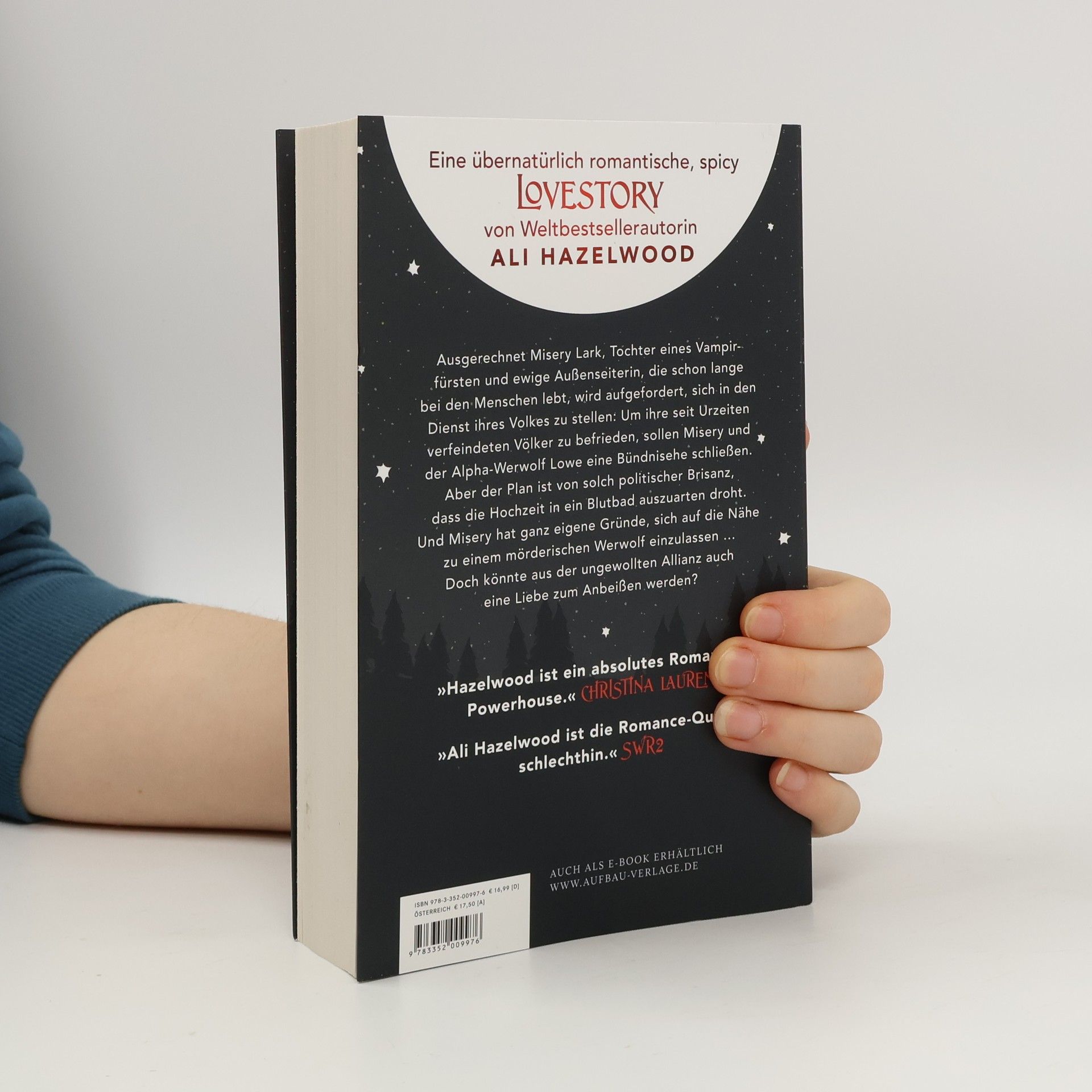 Mit wunderschönem farbigem Buchschnitt – limitiert auf die erste Auflage. Misery Lark, Tochter eines mächtigen Vampirfürsten, ist eine Außenseiterin, die unter den Menschen ein anonymes Dasein führt. Plötzlich soll sie sich jedoch einer brisanten Bündnisehe mit einem Werwolf, dem ewigen Feind der Vampire, hingeben. Ihr zukünftiger Ehemann, der Alpha Lowe Moreland, ist ebenso erbarmungslos wie unberechenbar, regiert jedoch mit Autorität und einem Sinn für Gerechtigkeit, was ihn von den Vampiren unterscheidet. Misery spürt, dass er ihr nicht traut – und das aus gutem Grund, denn sie hat eigene Motive für das Bündnis und ist bereit, alles zu opfern, selbst ein Leben unter Wölfen. Doch sie hat nicht mit der überwältigenden Kraft der Liebe gerechnet, die alle Unterschiede überwindet. Der neue Bestseller von Ali Hazelwood erzählt von einer Liebe zwischen zwei Welten: Forbidden Love, Fated Mates, Enemies to Lovers und mehr in einer übernatürlich romantischen, prickelnd heißen Lovestory aus einem neuen Teil des Aliversums. »Hazelwood ist ein absolutes Romance-Powerhouse.« – Christina Lauren. »Leidenschaftlich und witzig – Ali Hazelwoods Debüt im Paranormalen führt uns in eine faszinierende Welt.« – Nalini Singh, New-York-Times-Bestsellerautorin.
