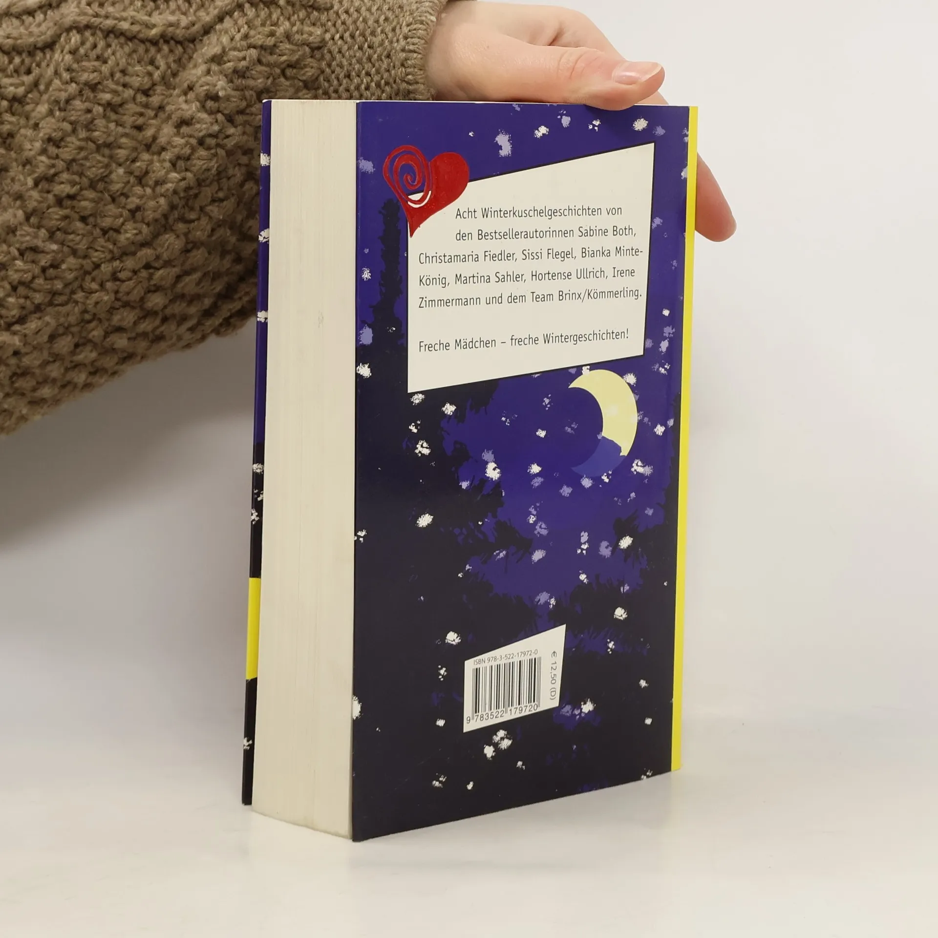 8 Winterkuschelgeschichten von 8 Bestseller-Autorinnen: Sabine Both: Lebkuchenherz zu verschenken Brinx/Kömmerling: Kuschliges neues Jahr. Christamaria Fiedler: Bratapfel criminale. Sissi Flegel: Liebe, Ski & Schneegestöber. Bianka Minte-König: Heiße Küsse, kalte Füße. Martina Sahler: Konfettiküsse. Hortense Ullrich: Kuss oder Kürbis. Irene Zimmermann: Küsse, Chaos, Schlittenfahrt. Reihe „Freche Mädchen - Freche Bücher!“. Auch mit Schal erhältlich unter ISBN 978-3-522-17977-5 (Euro 19,90)