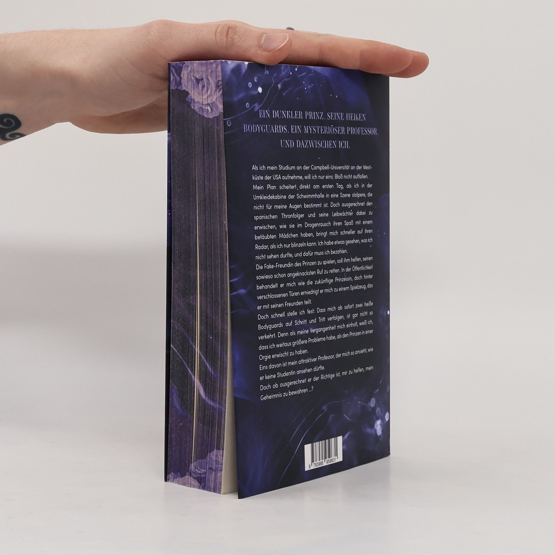 Ein dunkler Prinz. Seine heißen Bodyguards. Ein mysteriöser Professor. Und dazwischen ich. Als ich mein Studium an der Campbell-Universität an der Westküste der USA aufnehme, will ich nur eins: Bloß nicht auffallen. Mein Plan scheitert direkt am ersten Tag, als ich in der Umkleidekabine der Schwimmhalle in eine Szene stolpere, die nicht für meine Augen bestimmt ist. Doch ausgerechnet den spanischen Thronfolger und seine Leibwächter dabei zu erwischen, wie sie im Drogenrausch ihren Spaß mit einem betäubten Mädchen haben, bringt mich schneller auf ihren Radar, als ich nur blinzeln kann. Ich habe etwas gesehen, was ich nicht sehen durfte, und dafür muss ich bezahlen. Die Fake-Freundin des Prinzen zu spielen, soll ihm helfen, seinen sowieso schon angeknacksten Ruf zu retten. In der Öffentlichkeit behandelt er mich wie die zukünftige Prinzessin, doch hinter verschlossenen Türen erniedrigt er mich zu einem Spielzeug, das er mit seinen Freunden teilt. Doch schnell stelle ich fest: Dass mich ab sofort zwei heiße Bodyguards auf Schritt und Tritt verfolgen, ist gar nicht so verkehrt. Denn als meine Vergangenheit mich einholt, weiß ich, dass ich weitaus größere Probleme habe, als den Prinzen in einer Orgie erwischt zu haben. Eins davon ist mein attraktiver Professor, der mich so ansieht, wie er keine Studentin ansehen dürfte. Doch ob ausgerechnet er der Richtige ist, mir zu helfen, mein Geheimnis zu bewahren …?