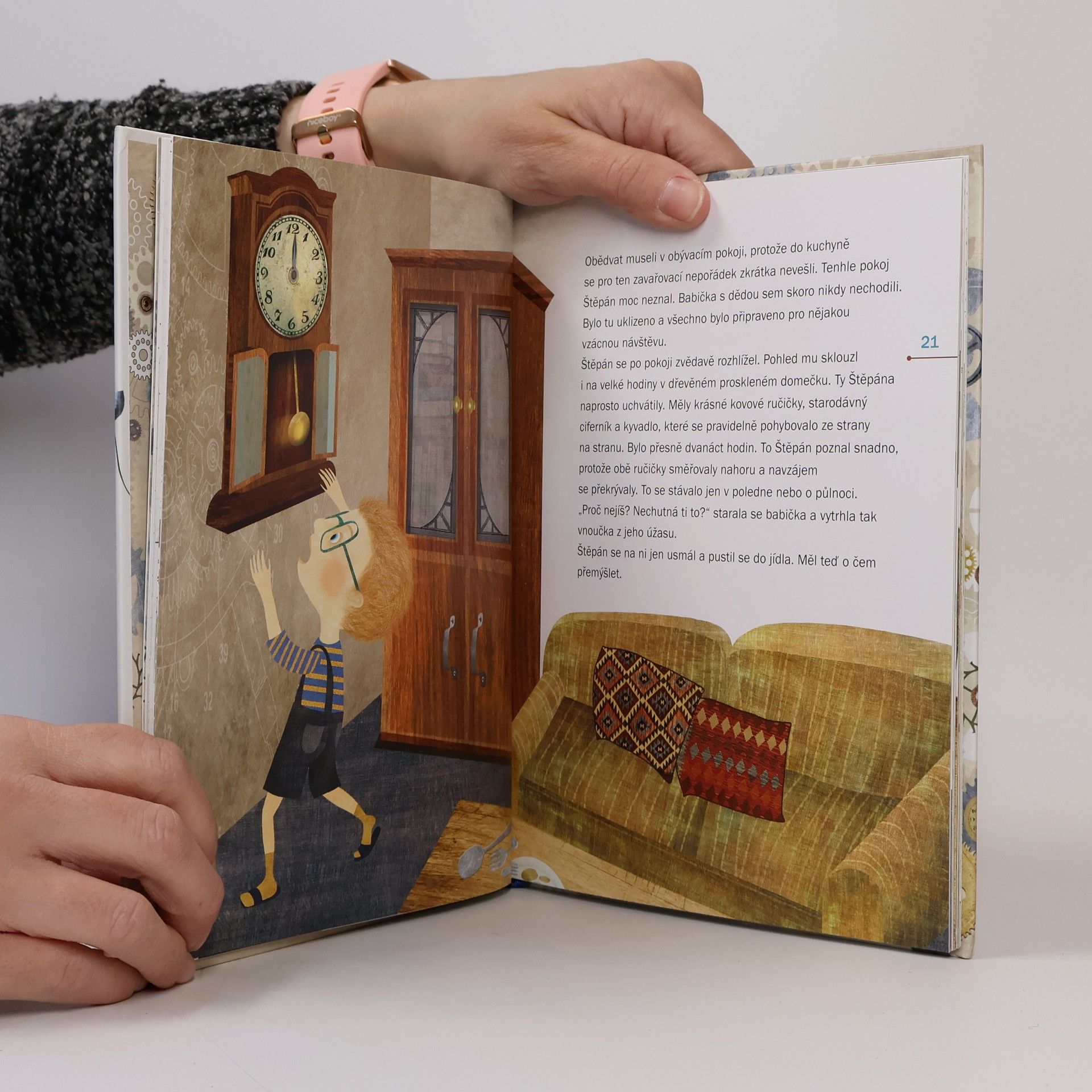 Štěpán je neobyčejně zvídavý kluk. Všechno ho zajímá, všemu chce přijít na kloub. Jakmile je v jeho dosahu nějaký přístroj, hned zkoumá, jak funguje a jak by se ho dalo využít. Na otázku, čím by chtěl být, bez váhání odpoví: „Budu vynálezcem!“ Co se stane, když se takový kluk ocitne sám v noci s velkými starožitnými hodinami? Jak fungují? A jaké tajemství se skrývá u prarodičů na půdě? Vezměte si šroubovák, hodinářské kukátko a probuďte ve svých dětech vynálezce. Kniha je určena pro předškolní děti nebo pro čerstvé školáky, kteří mají rádi stroje a přístroje a rádi si čtou s rodiči. Mimo jiné příběh o Štěpánovi dětem nenásilně a hravou formou osvětluje základní terminologii spojenou s určováním času (malá a velká ručička a jaký časový úsek ukazuje, celá hodina, časové úseky ciferníku atd.).