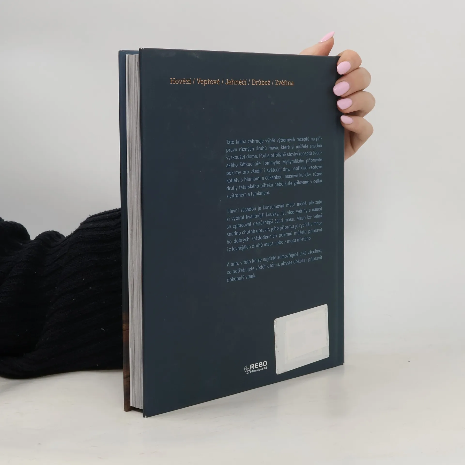 Tato kniha zahrnuje výběr výborných receptů na přípravu různých druhů masa, které si můžete snadno vyzkoušet doma. Podle přibližně stovky receptů připravíte lahodné pokrmy pro všední i sváteční dny, například vepřové kotlety s blumami a čekankou, vynikající švédské masové kuličky, různé druhy tatarského bifteku anebo například kuře grilované v celku s citronem a tymiánem. Najdete zde také vše, co potřebujete vědět k tomu, abyste dokázali připravit dokonalý steak.