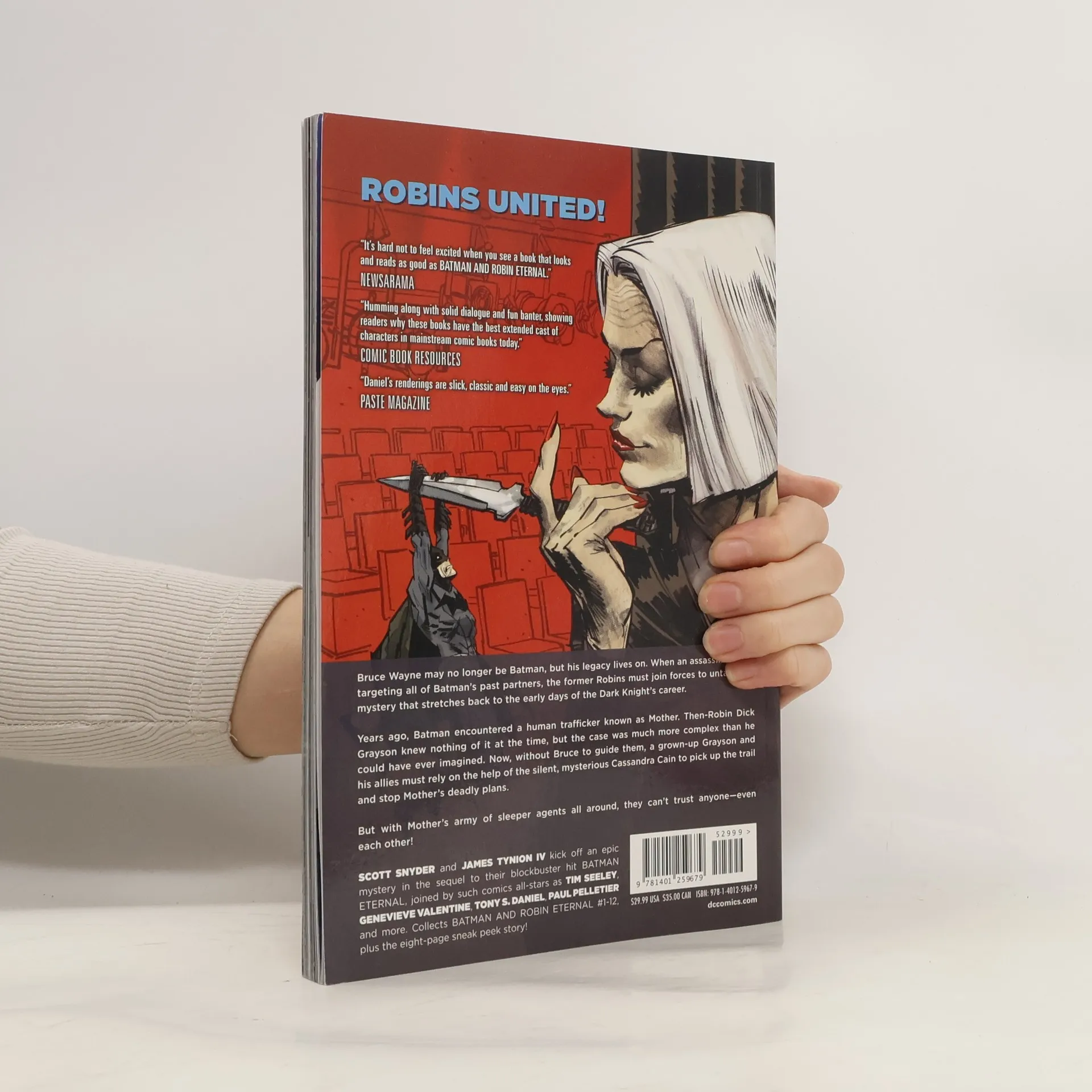 Five years ago, Batman and Robin worked the most disturbing case of their crimefighting careers--bringing down the organization of the ultimate human trafficker, the mysterious woman known only as Mother. At the time, Dick Grayson never quite understood the scope of that case, but now its darkest secrets are coming back to haunt him and everyone else who ever worked with Batman! With Bruce Wayne now lost to them, Dick and all his allies are out in the cold! Who can they trust? Is someone among them not who they say they are? And who is the deadly, silent young woman in black who's come to Gotham City looking for Batman?